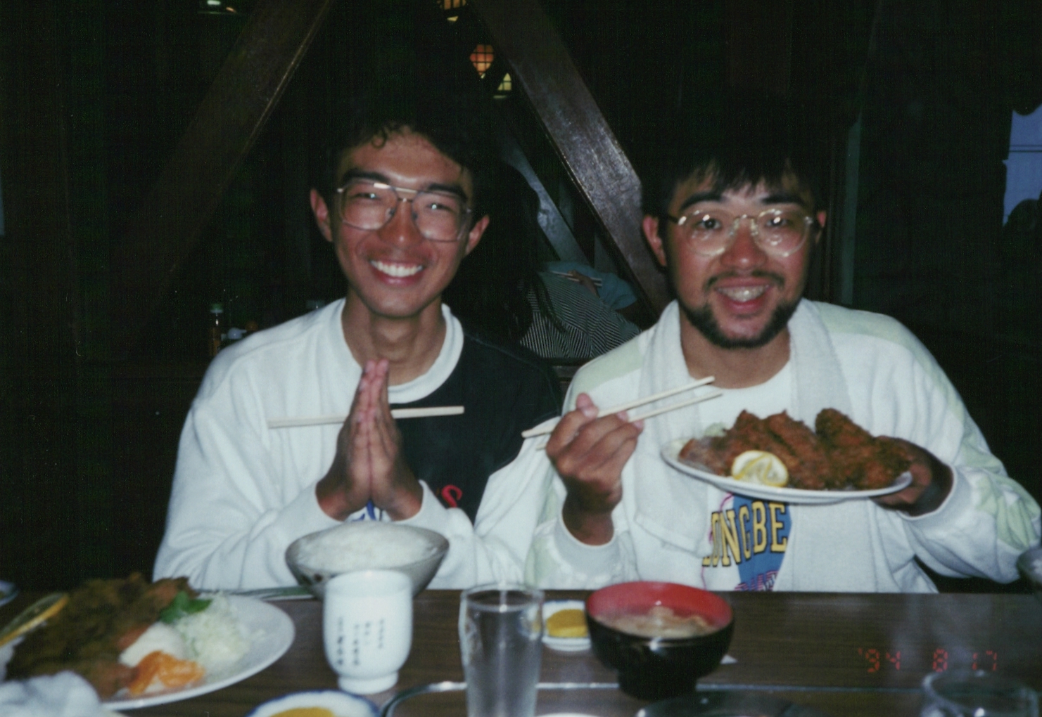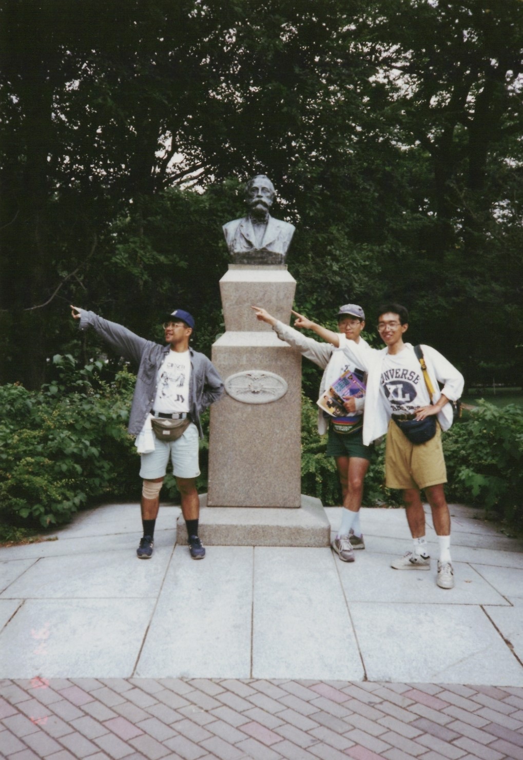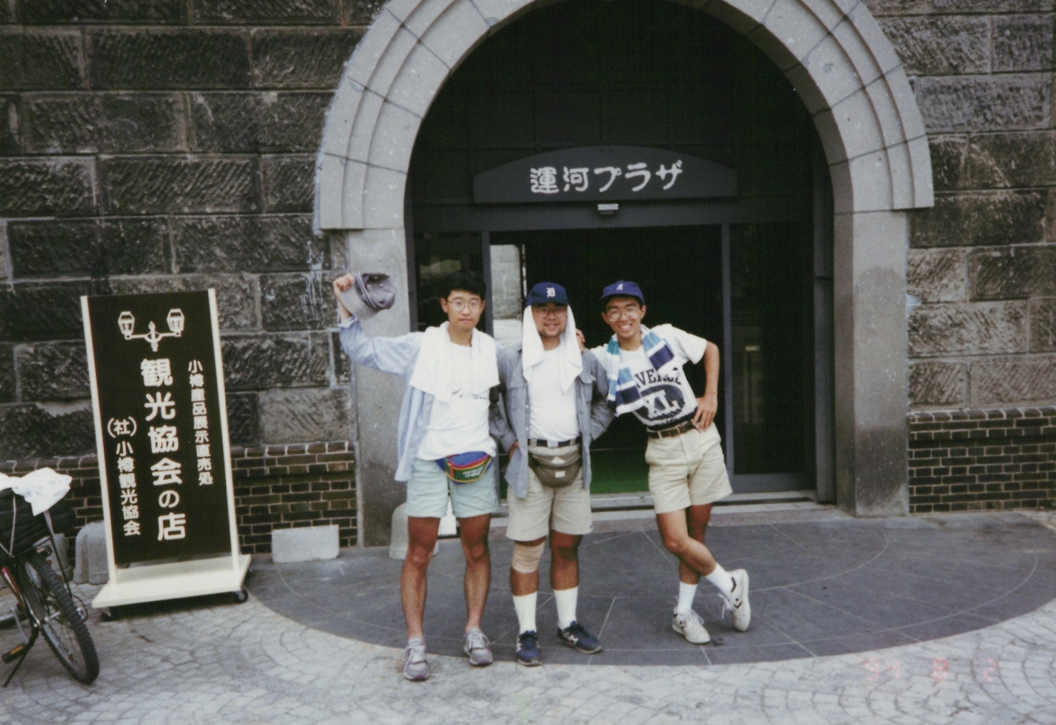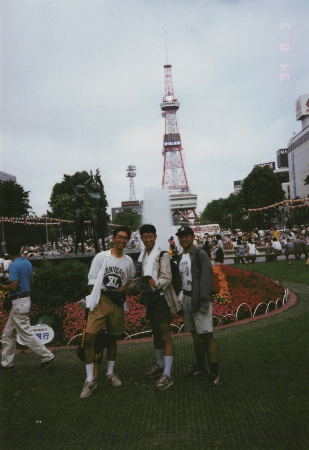 クラークの全身像がある公園は遠いので北海道大学の敷地内にあるクラークの胸像前でパチリ。ちなみに我々のとっているポーズはクラークの全身の像のとっているポーズである。ここ北大の生協で夕飯として食パンとジャムとジュースを買う。