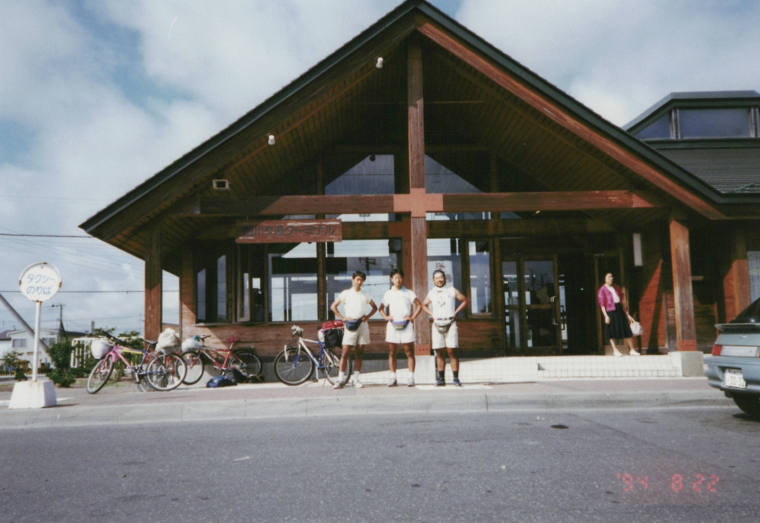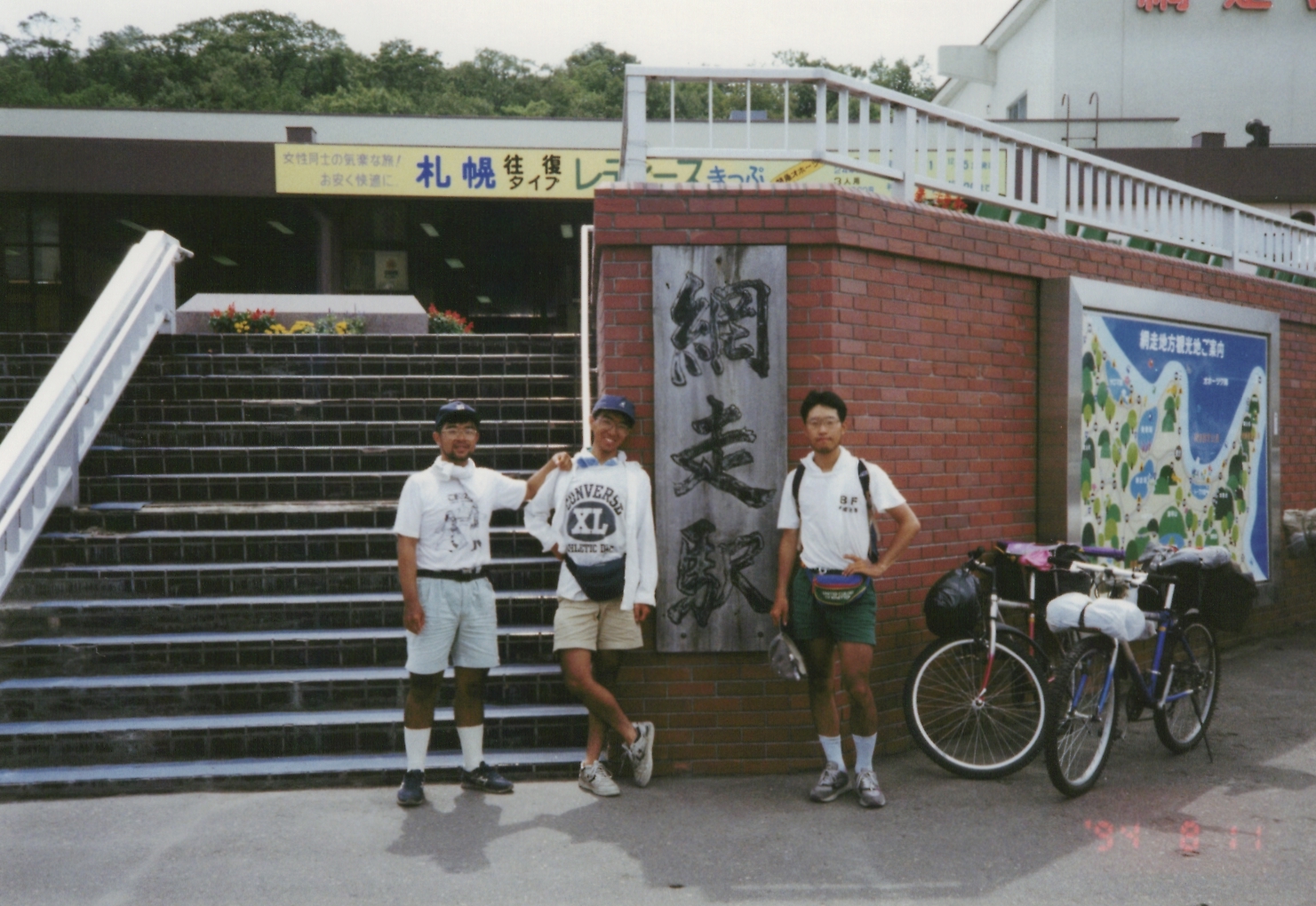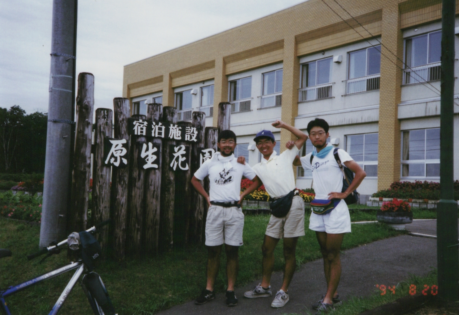 今まで野郎ばかりで写真を撮っていたので、私が女の子に頼んで一緒に写ってもらった。この娘たちも自転車で北海道を周っているとのこと。