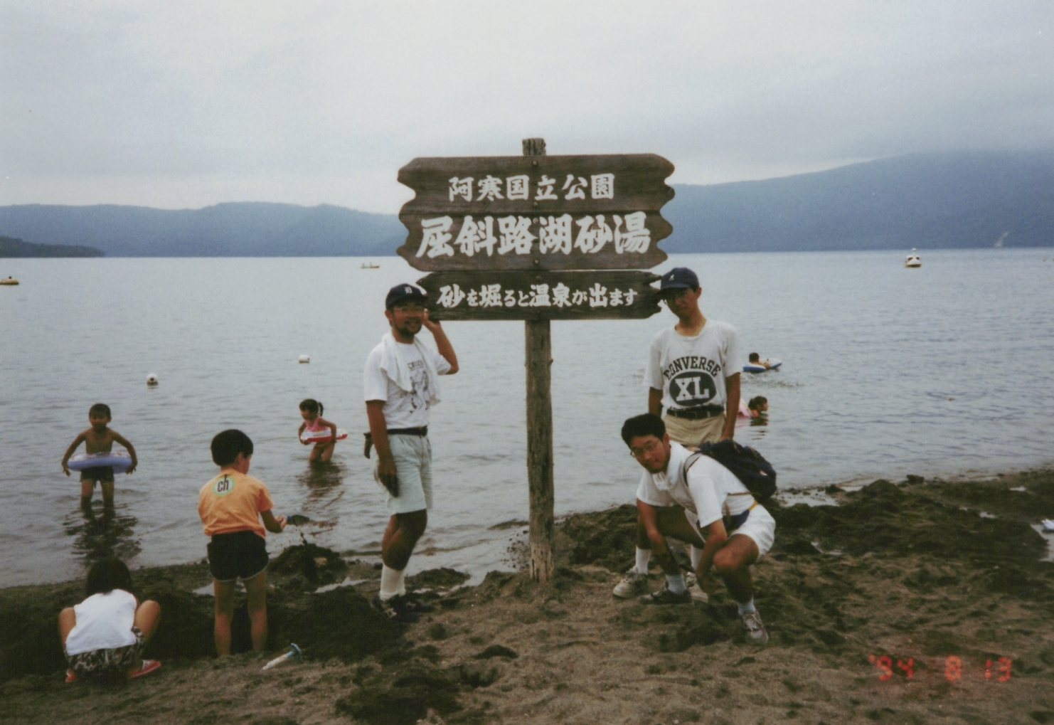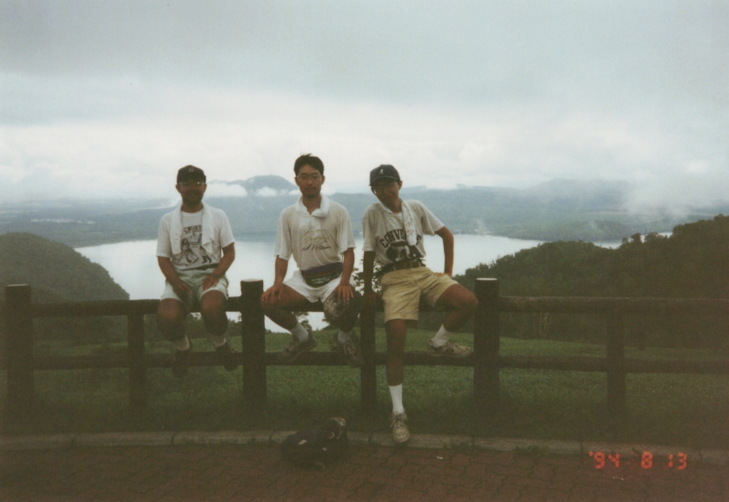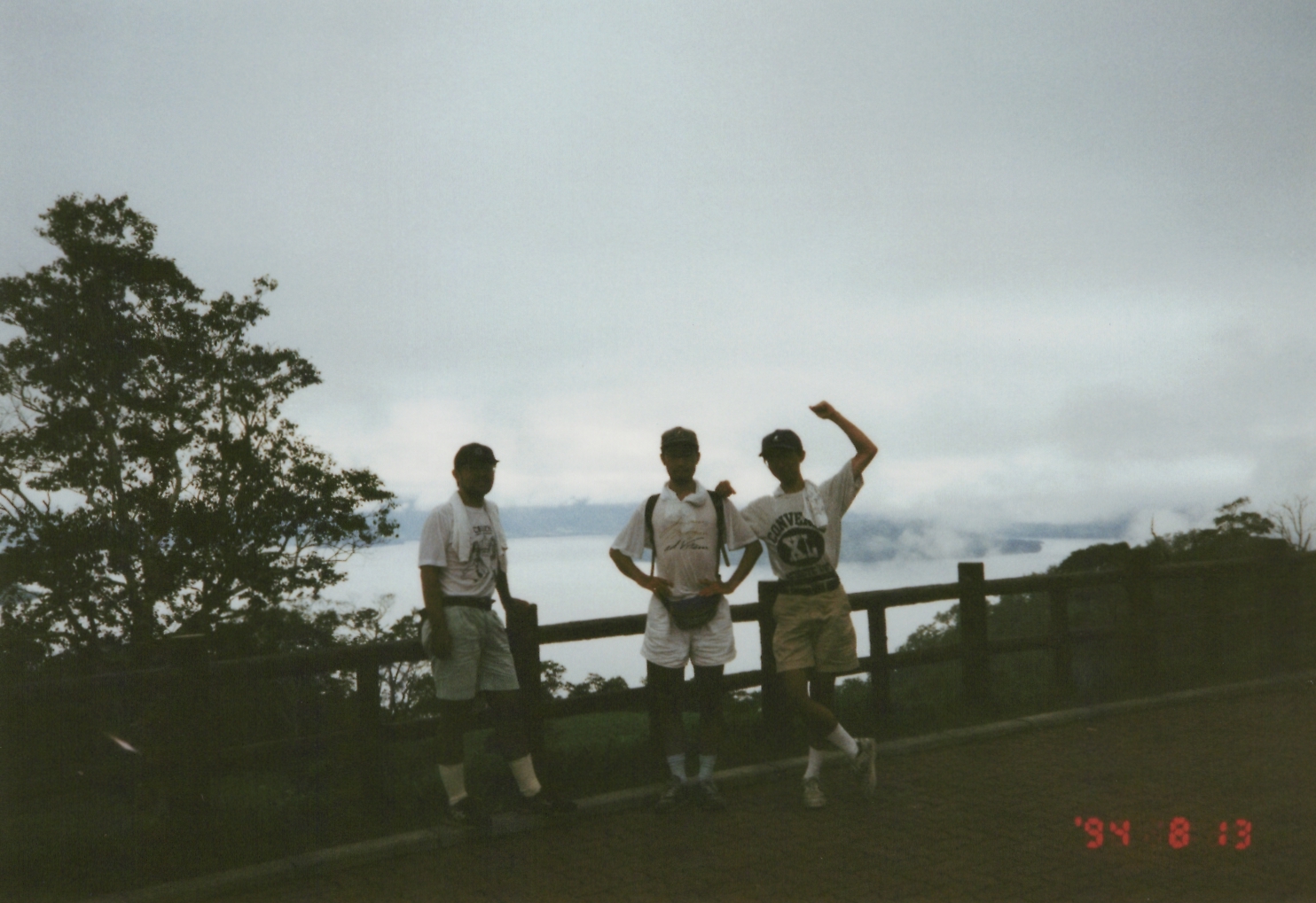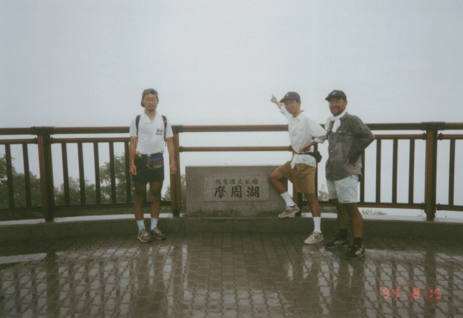 峠を越えるまでは霧雨だったが、屈斜路湖の見えるこの展望台でやっと晴れてきた。右手に屈斜路湖が見えた時の感動は忘れられない。