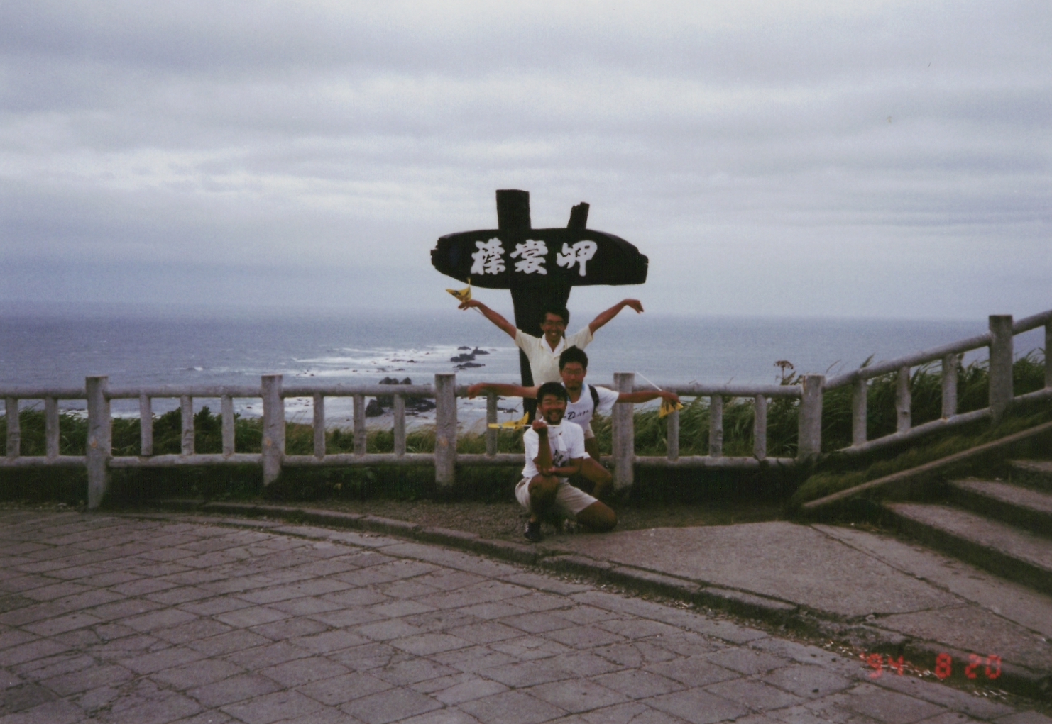 襟裳岬へついに到着。このポーズはトーテンポールのポーズとでもいおうか。もうちょっとアップで撮って欲しかった。