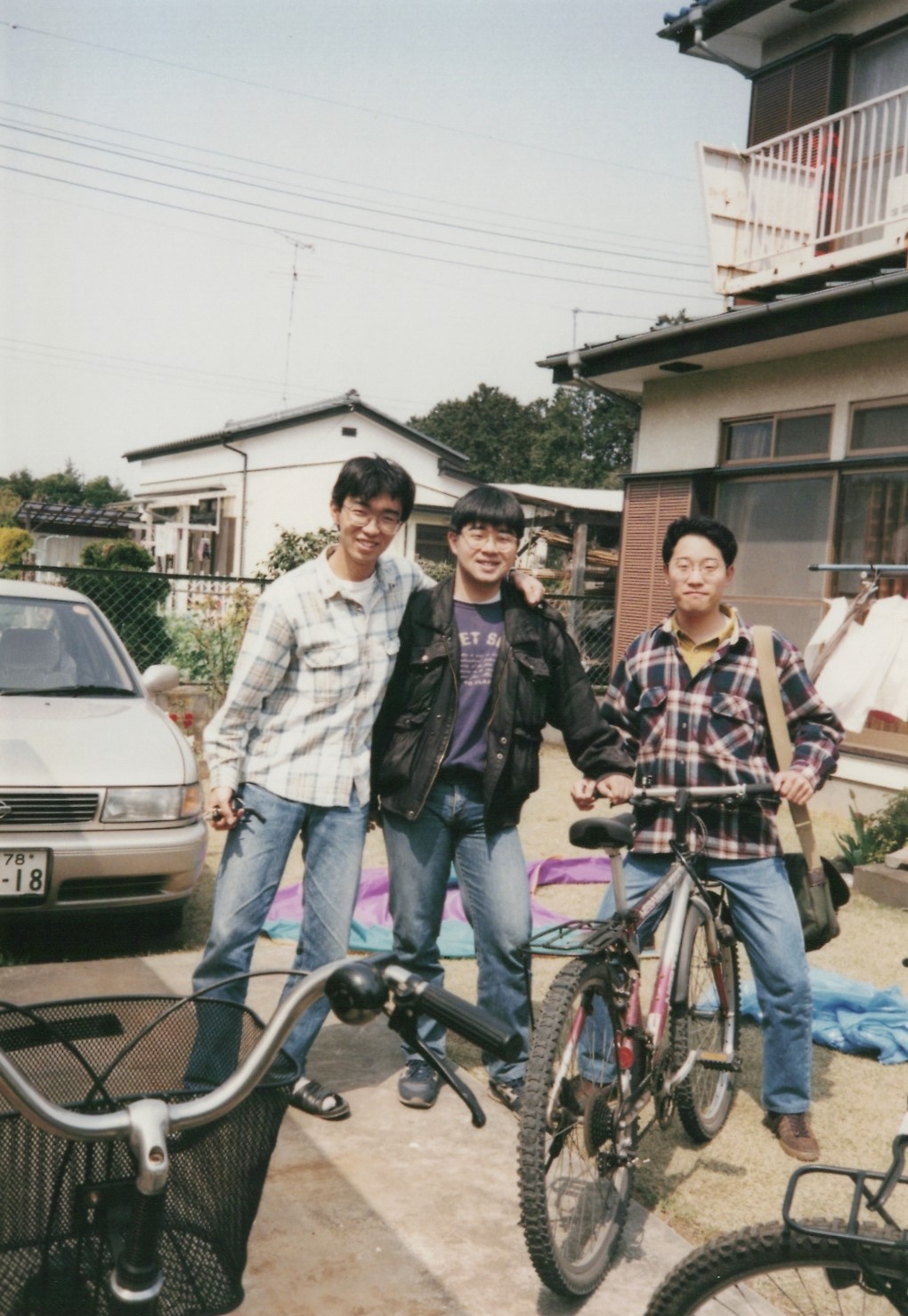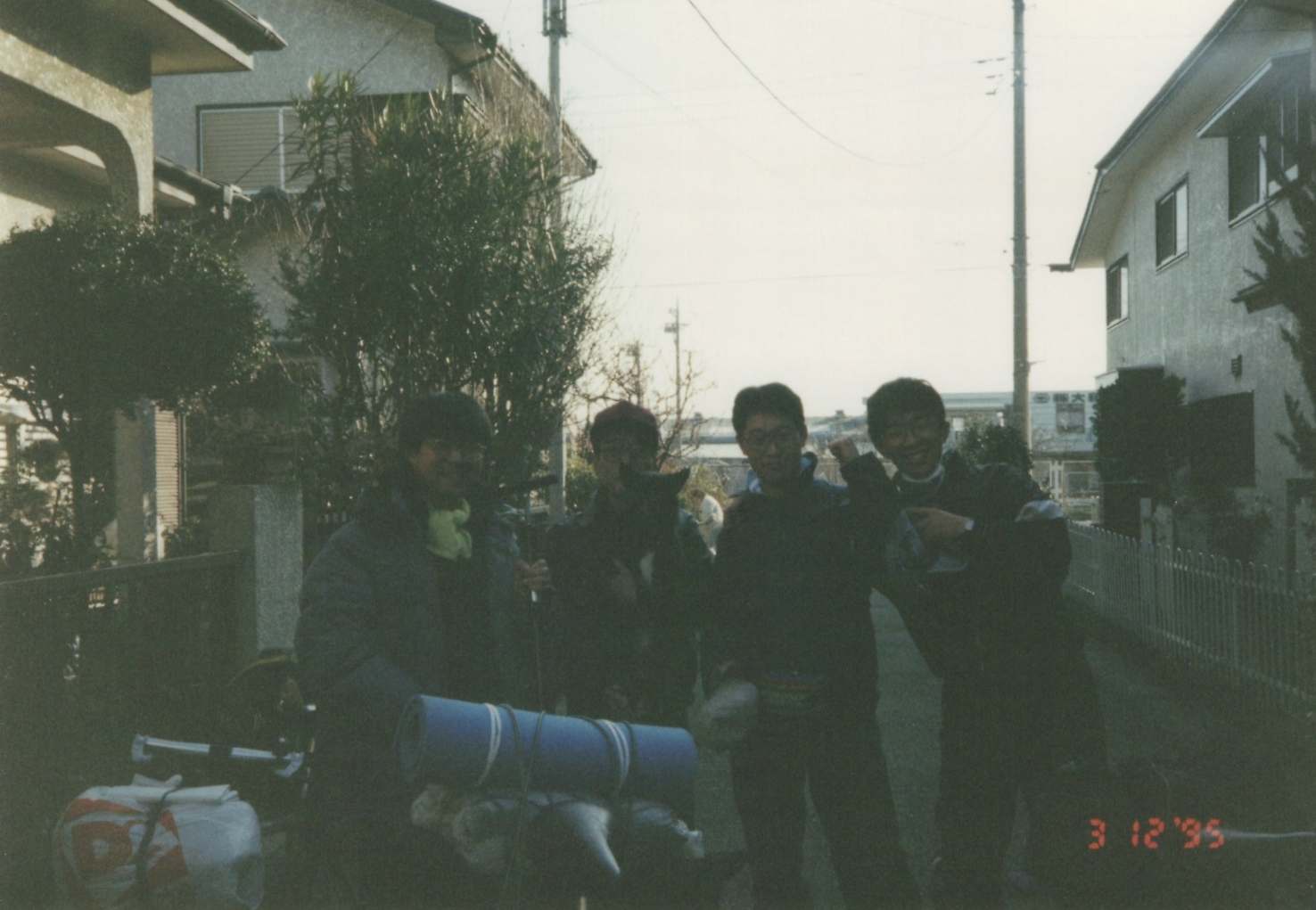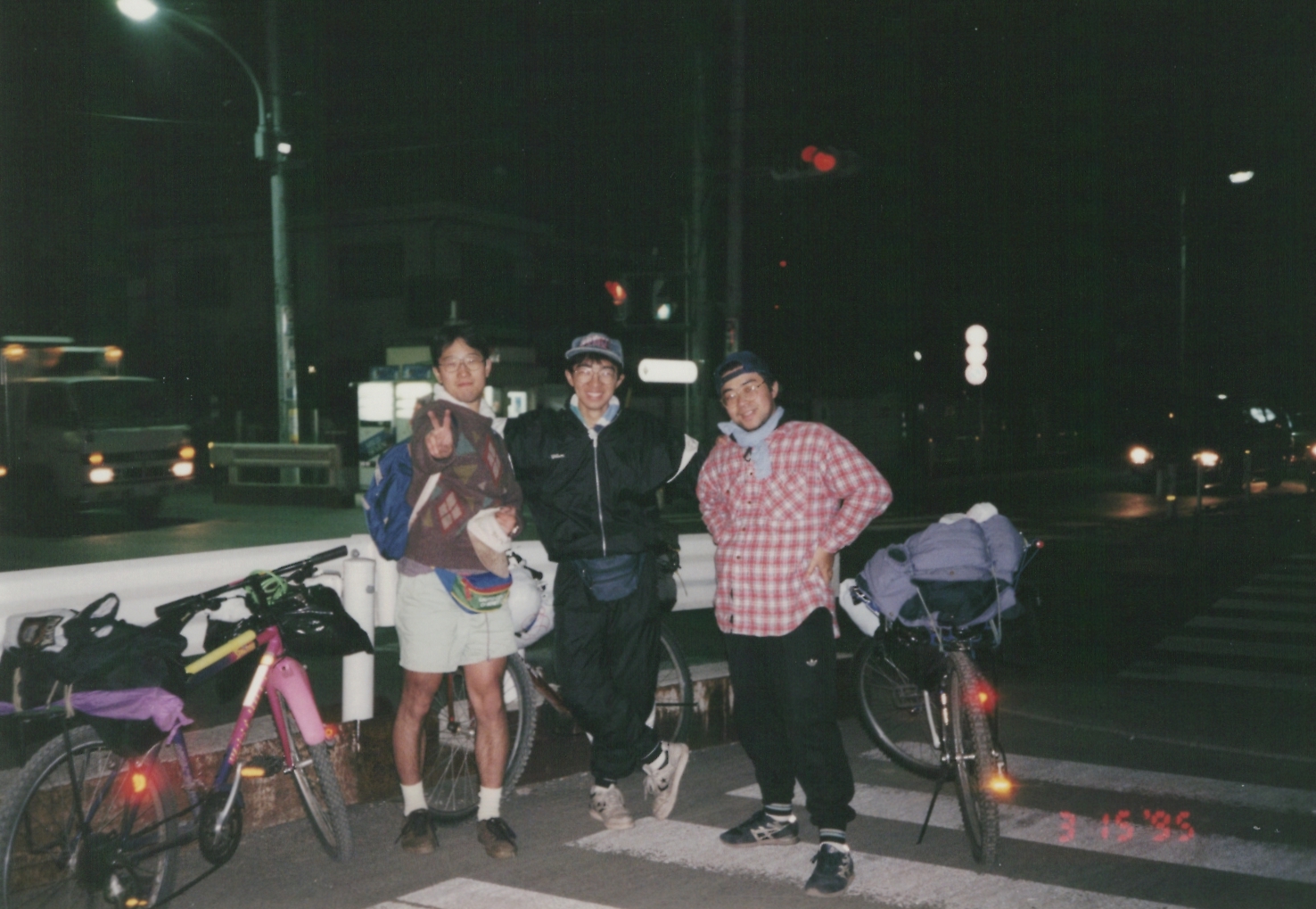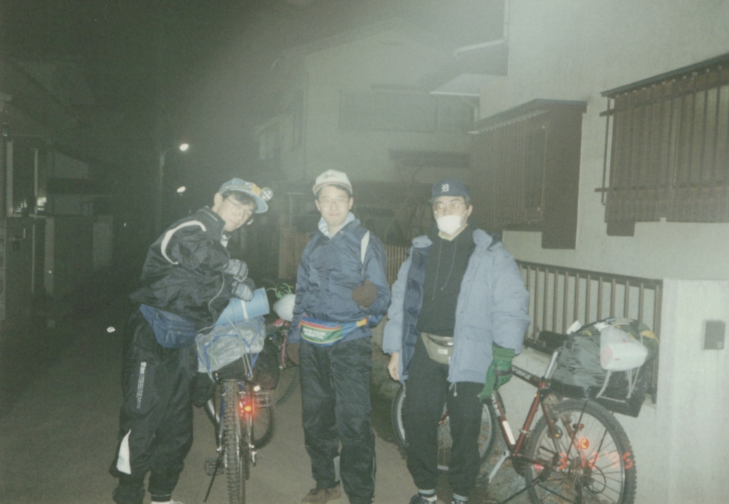つらい旅行も笑って話せる時期に入っている3人。野々垣がまたがっているのが私の愛車。