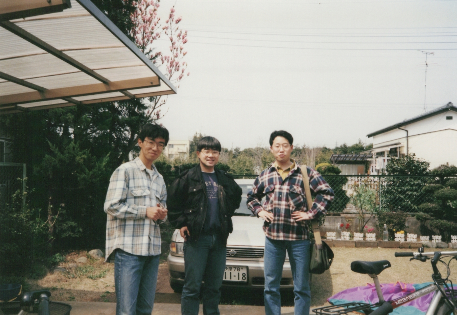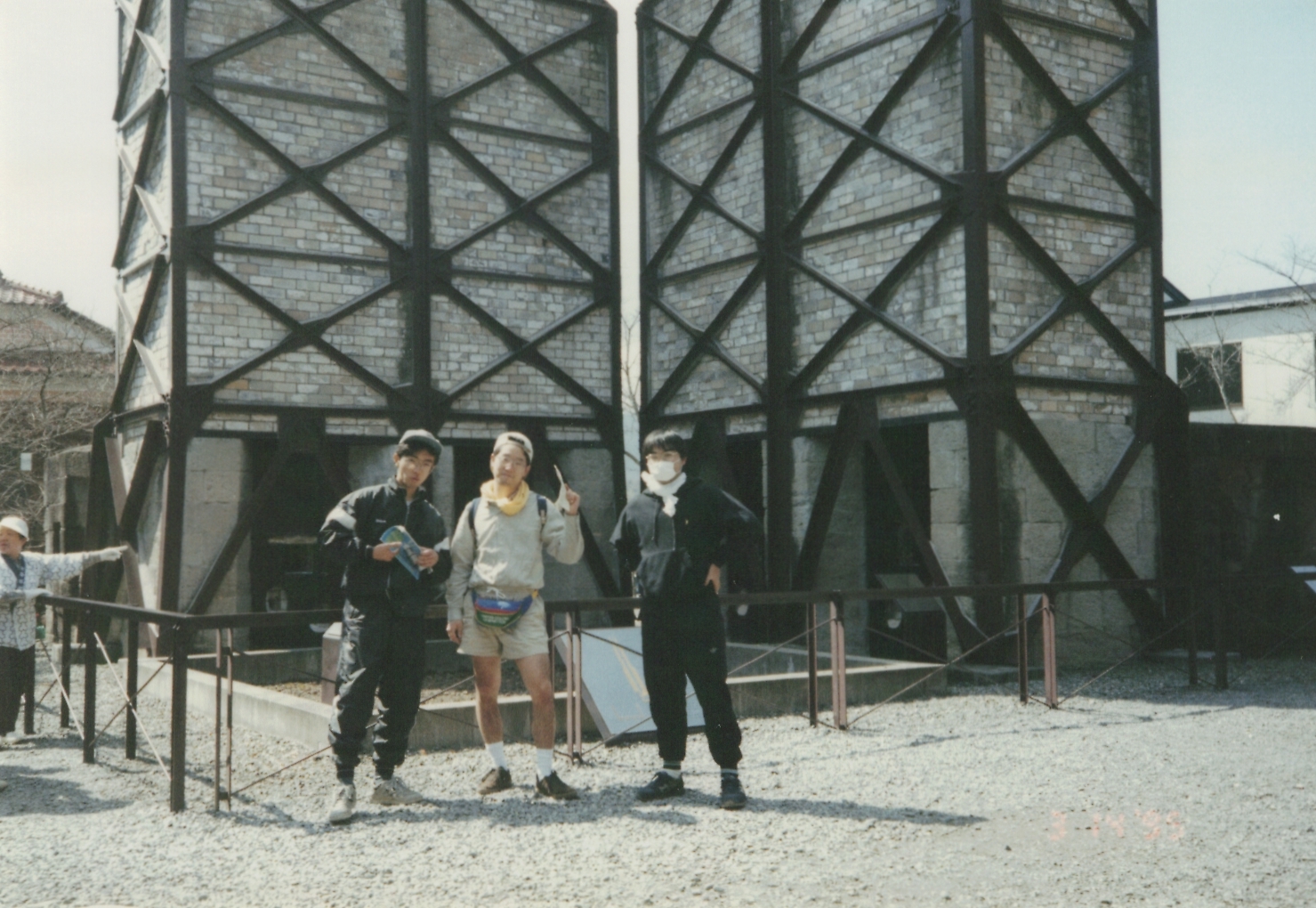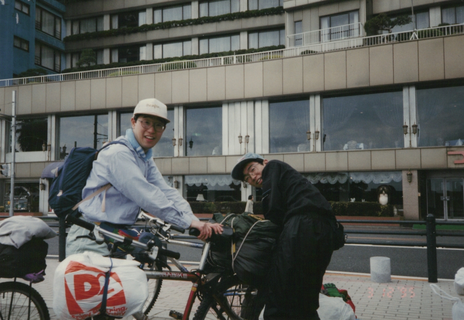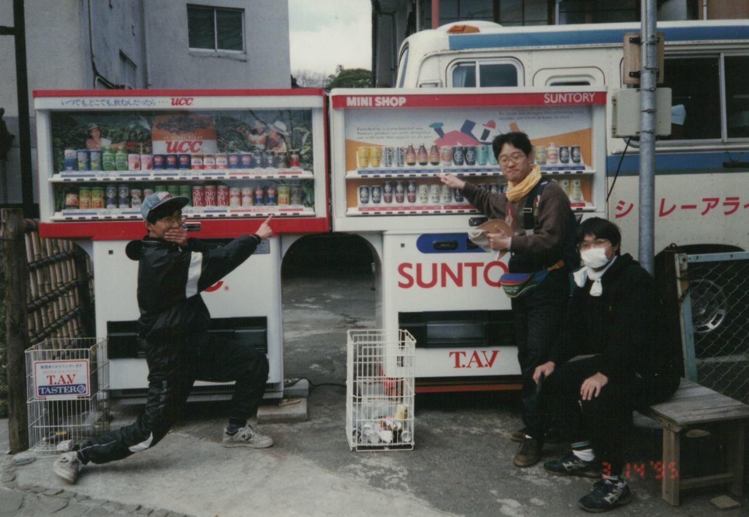 つらい旅行も笑って話せる時期に入っている3人。野々垣がまたがっているのが私の愛車。