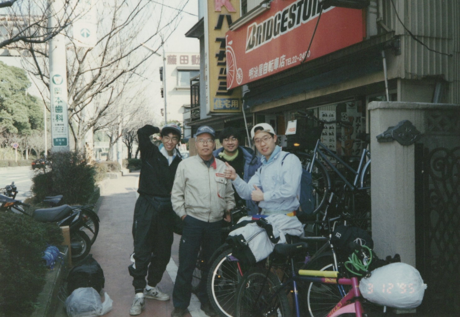 隠ちゃんやはりパンクでした。我々の初パンクを記念して自転車屋のおじさんとパチリ。ちなみに今回の旅行ではこの先パンクはありません。