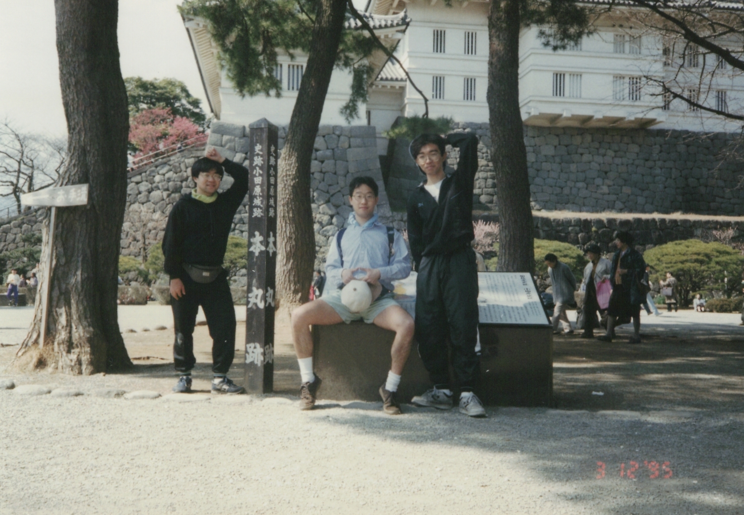 小田原城跡入り口。野々垣氏力こぶのポーズ。