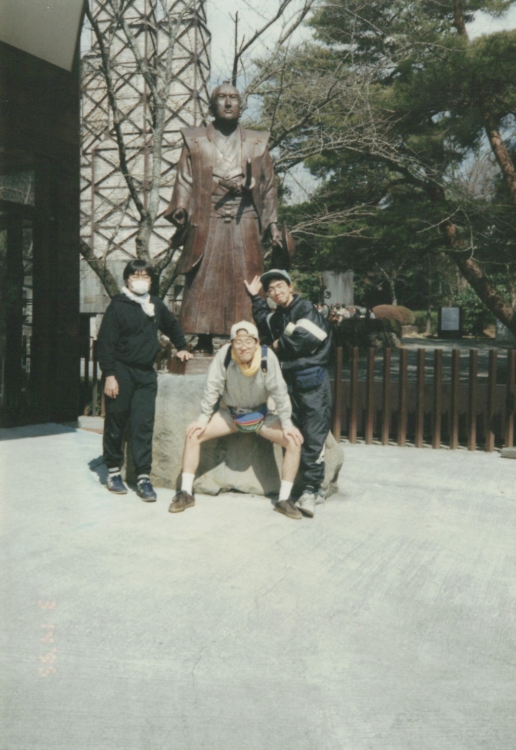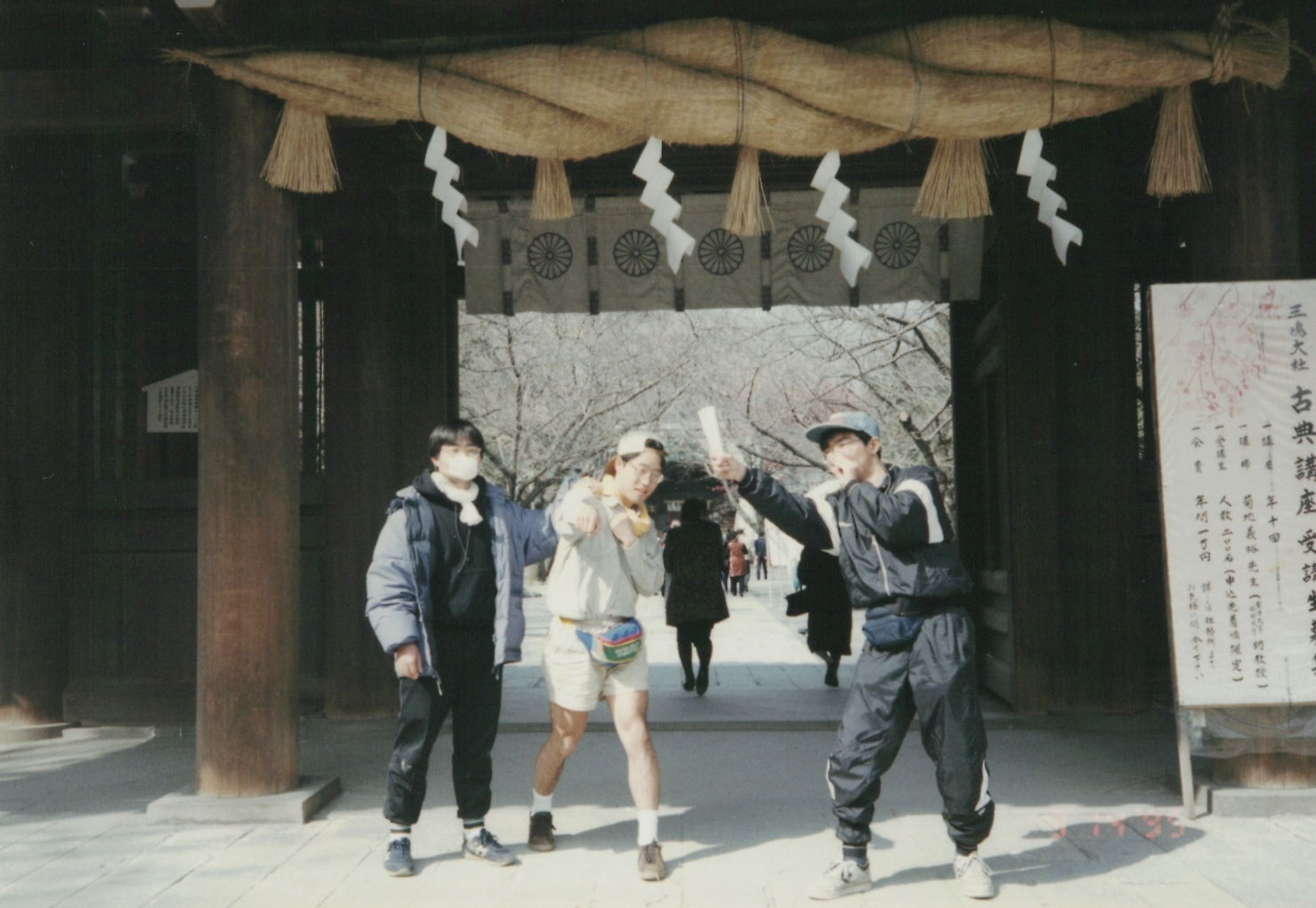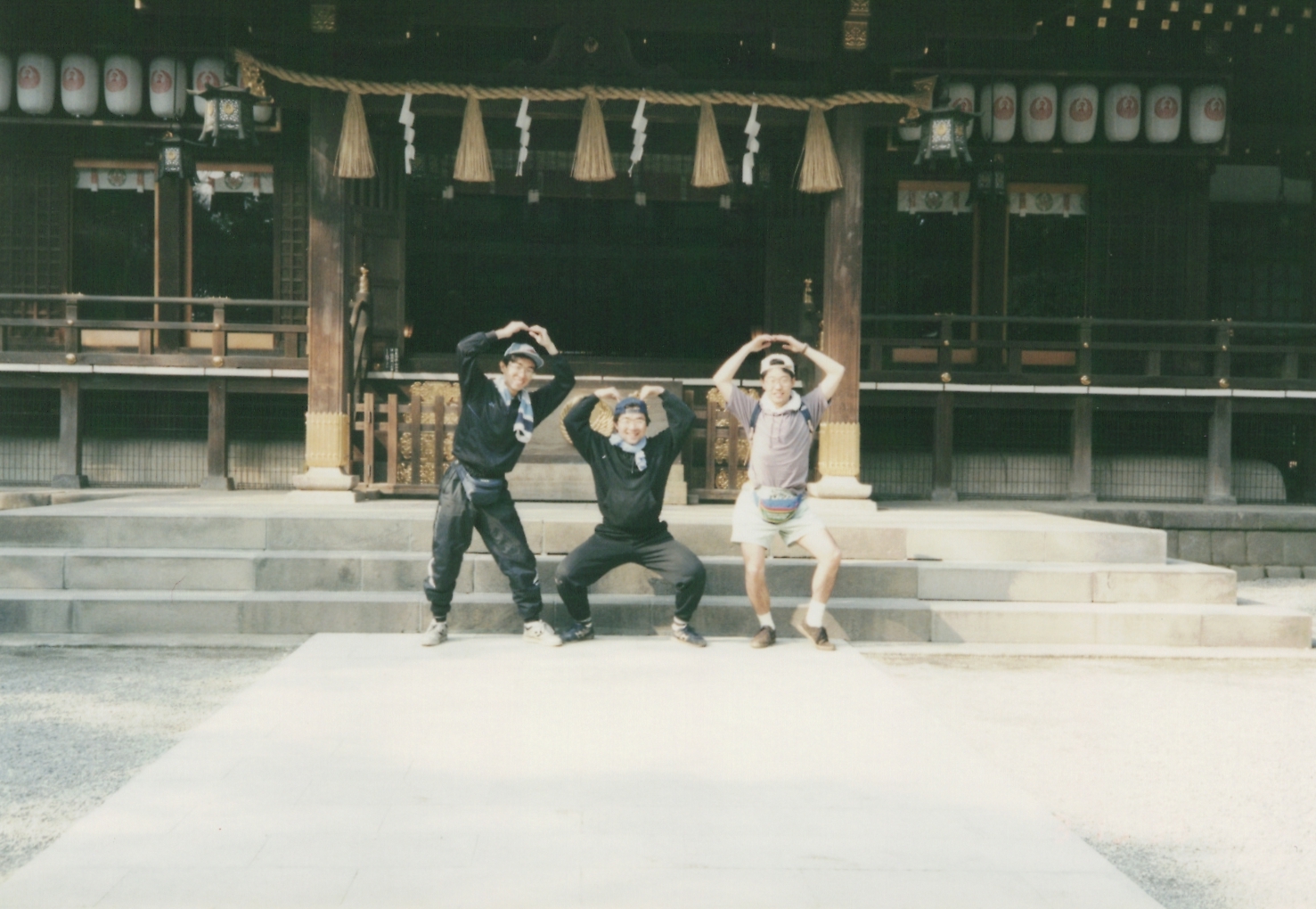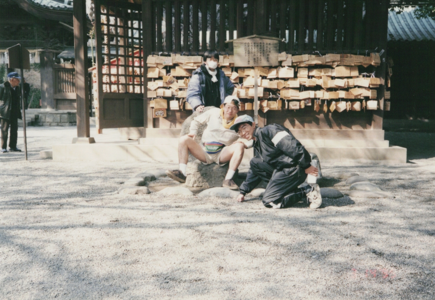 三島神社境内にある舞台の前にて。隠ちゃんだけポーズを決めていないため、この後殴られました。