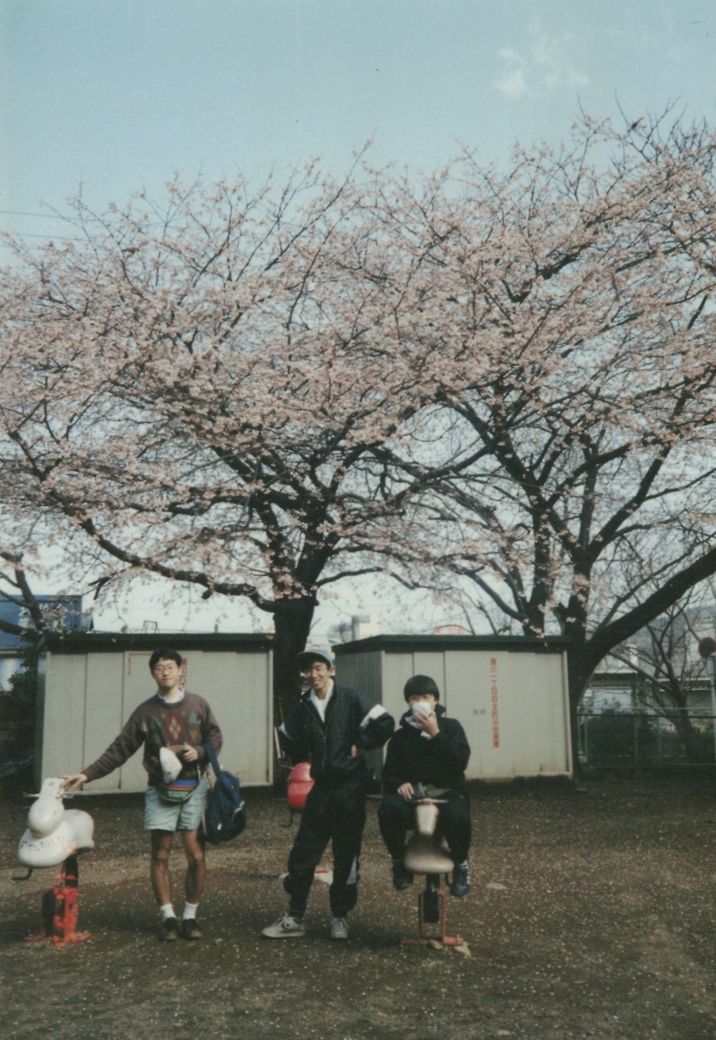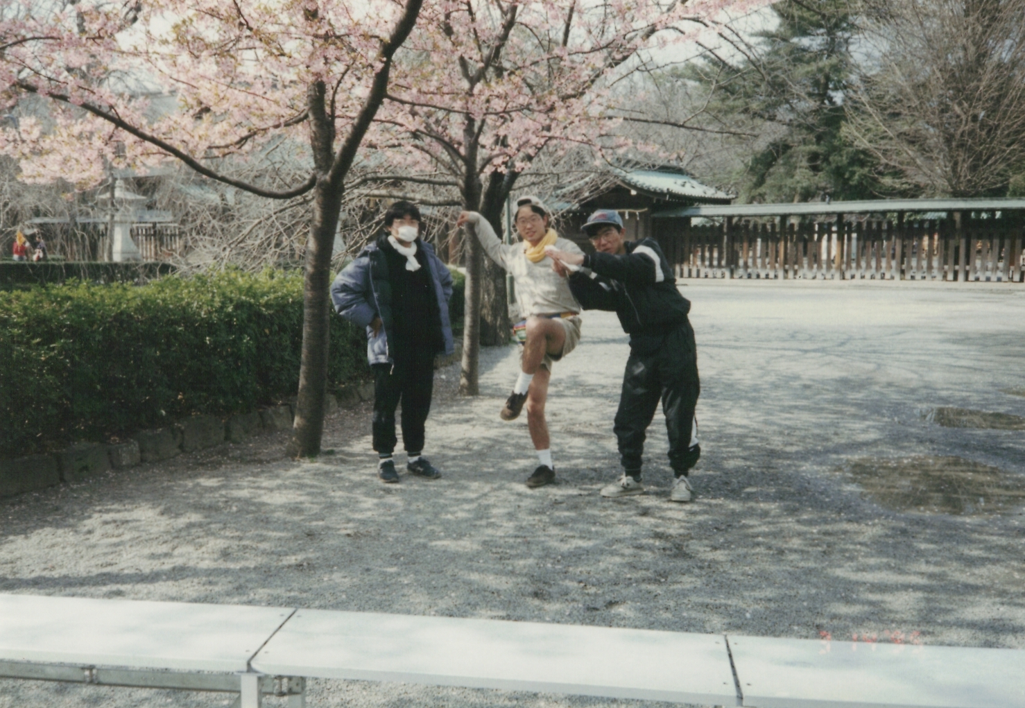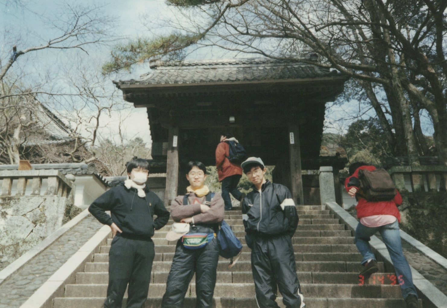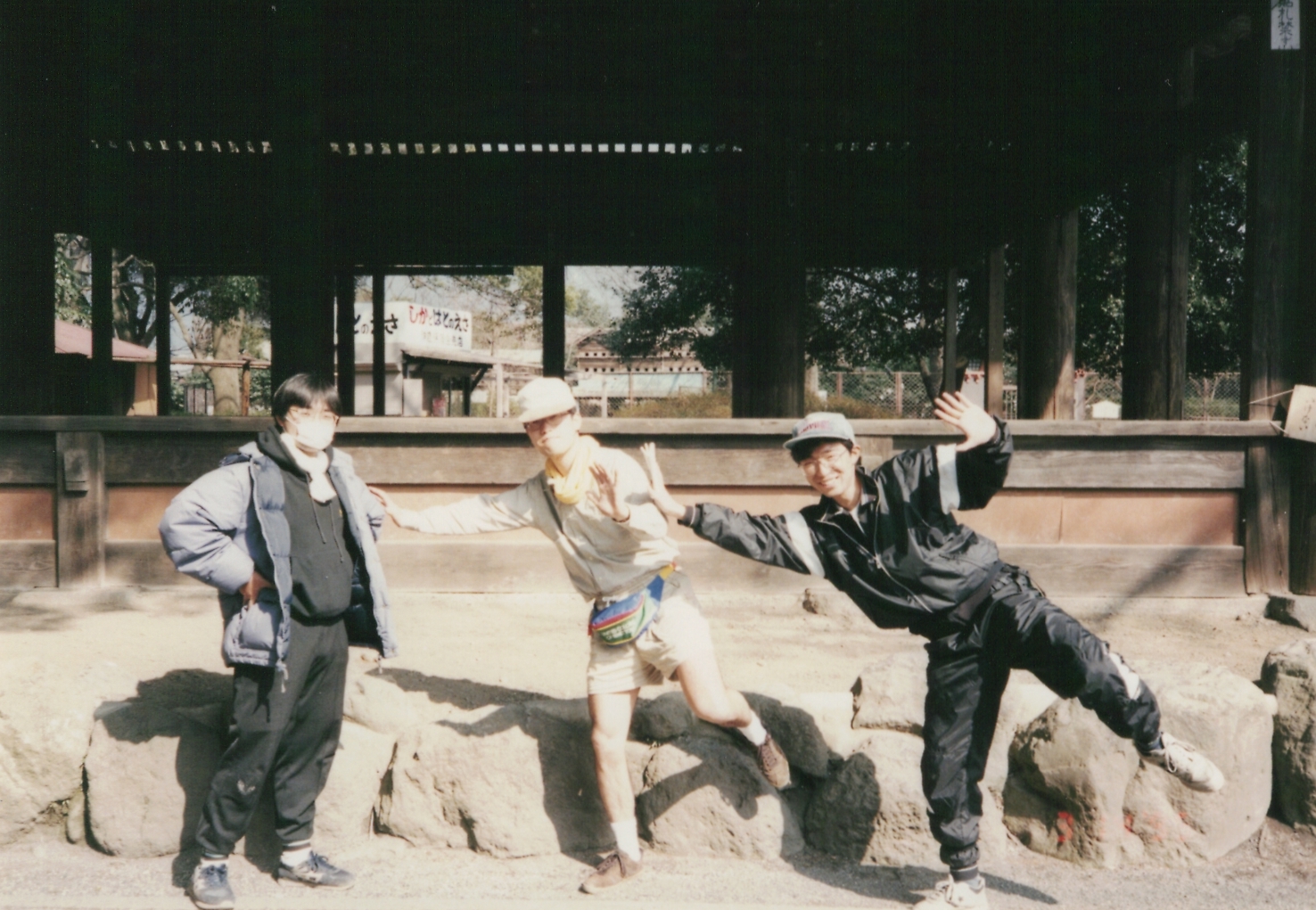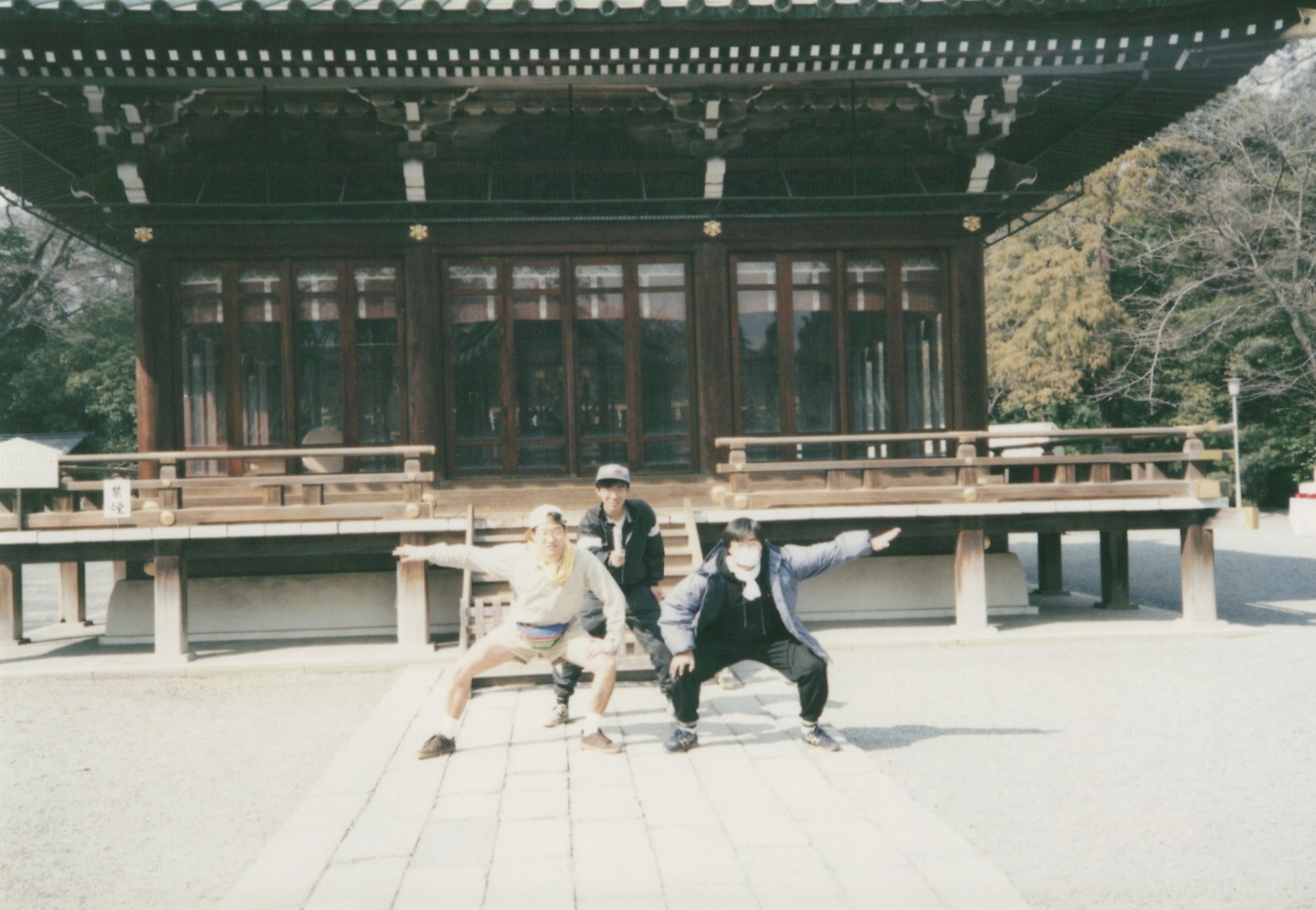 三島神社境内にある舞台の前にて。隠ちゃんだけポーズを決めていないため、この後殴られました。
