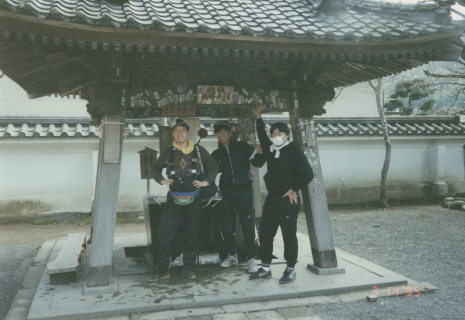 修禅寺の入り口。昨夜はぐっすり寝たのでエネルギーは十分。これで花粉症でなきゃいいのにな。ちなみに3人とも花粉症である。
