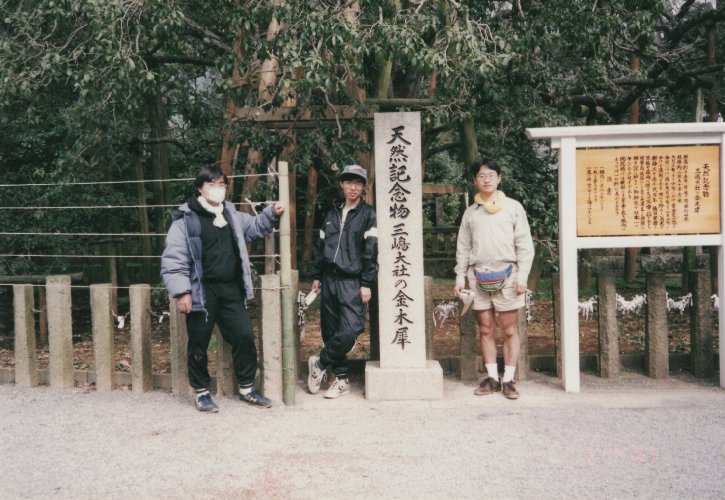 三島神社境内。この手の碑があるとすぐに写真を撮ってしまう3人である。