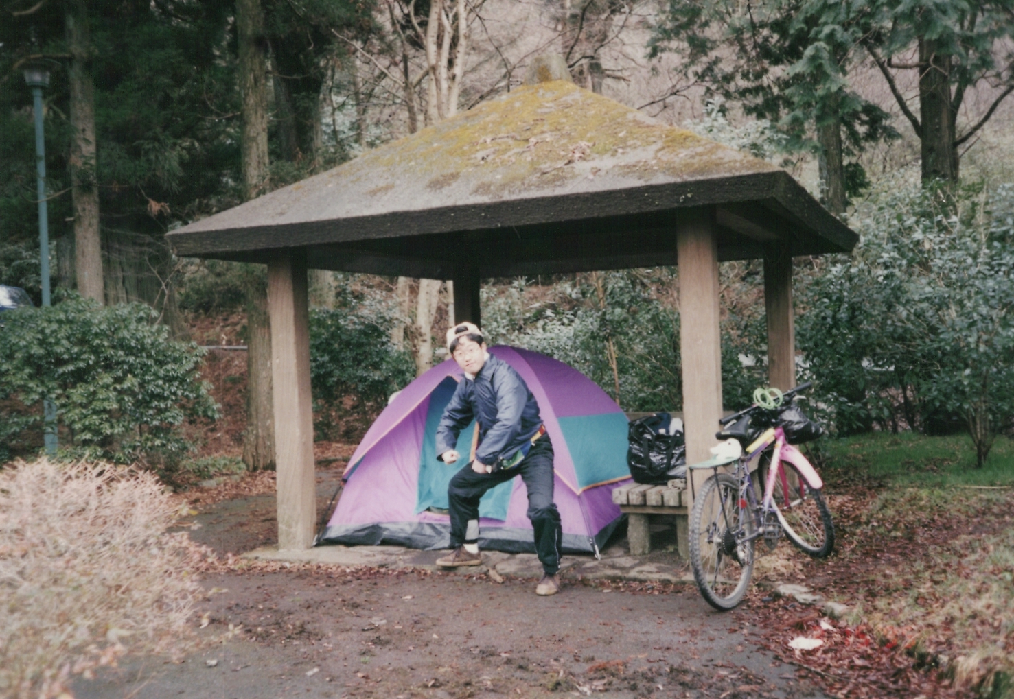 同じく旅館「つゆき」。ここのオーナーである紳士(真ん中)はとても親切で、テントが張れる場所を車で案内してくれました。感激のあまり、一緒に写ってもらいました。この後、ビールを飲み、ラーメンを食す。