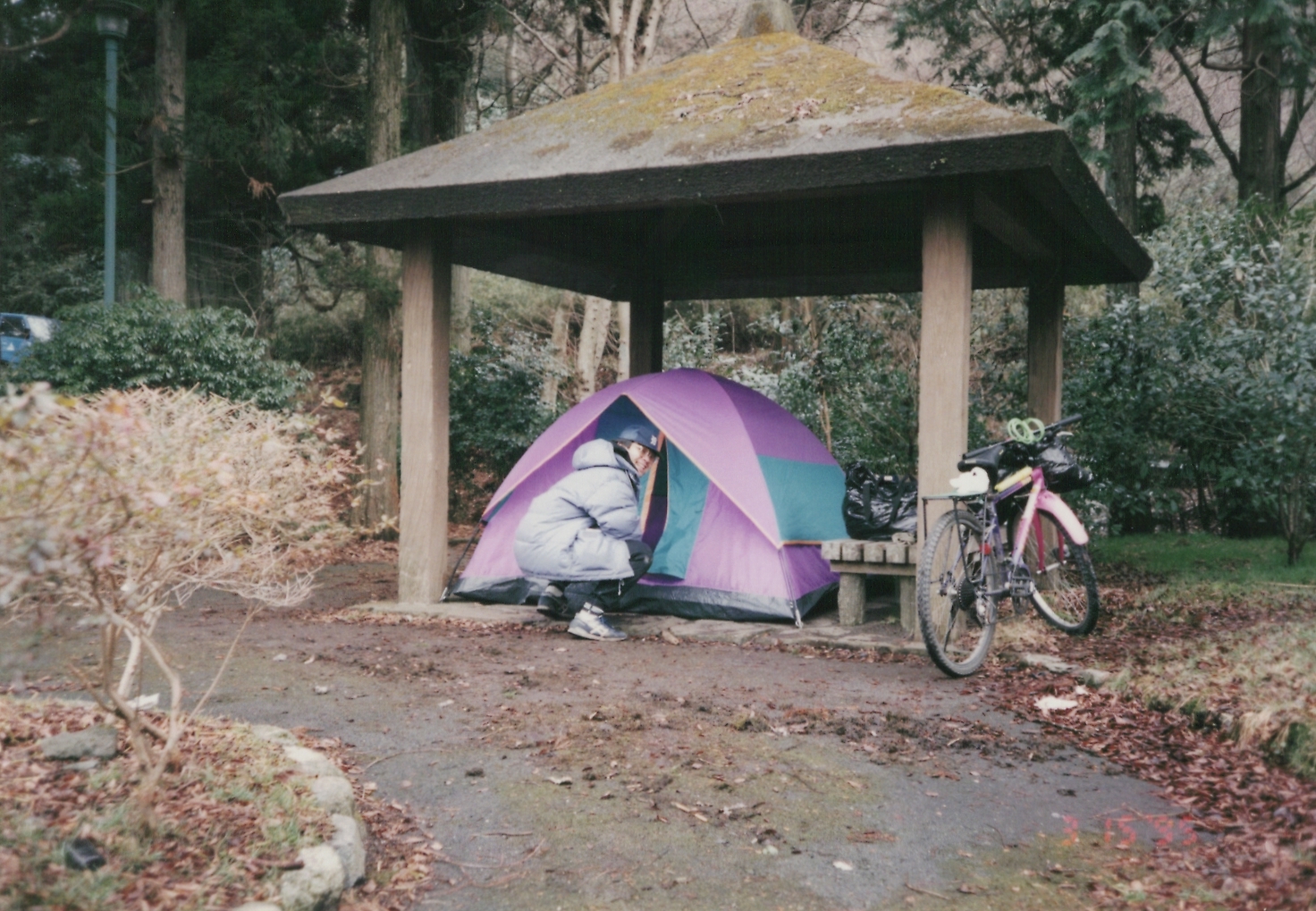 計画終了後。3月に自転車旅行が果たして出来るのか。我が家の庭で1泊してみることにしました。ぬかりが無い我々。
