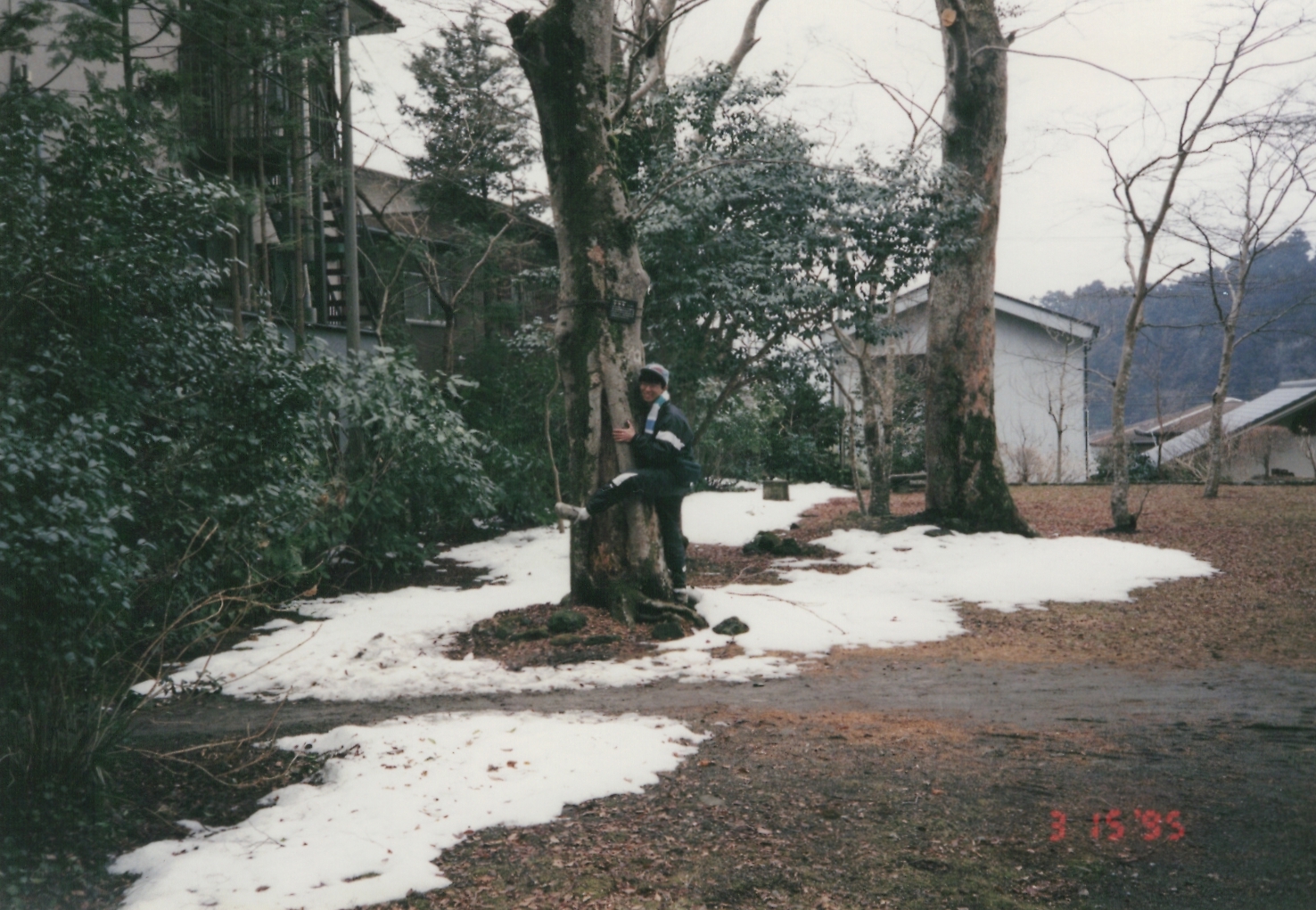 野々垣君の超自然体のポーズに感動し、思わず木に登り始める私である。
