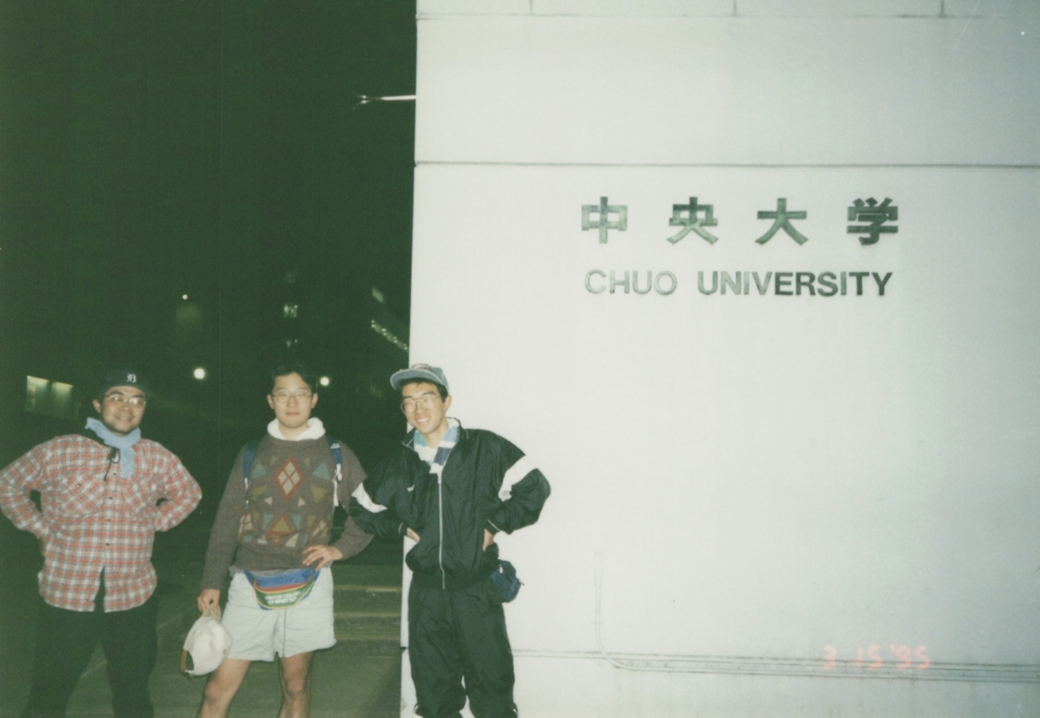 帰り道、私の母校、中大を通るので、記念に一枚。私の怪しげなかっこを見て、最初頼んだ女性はシャッターを押してくれませんでした。なめんなよ。