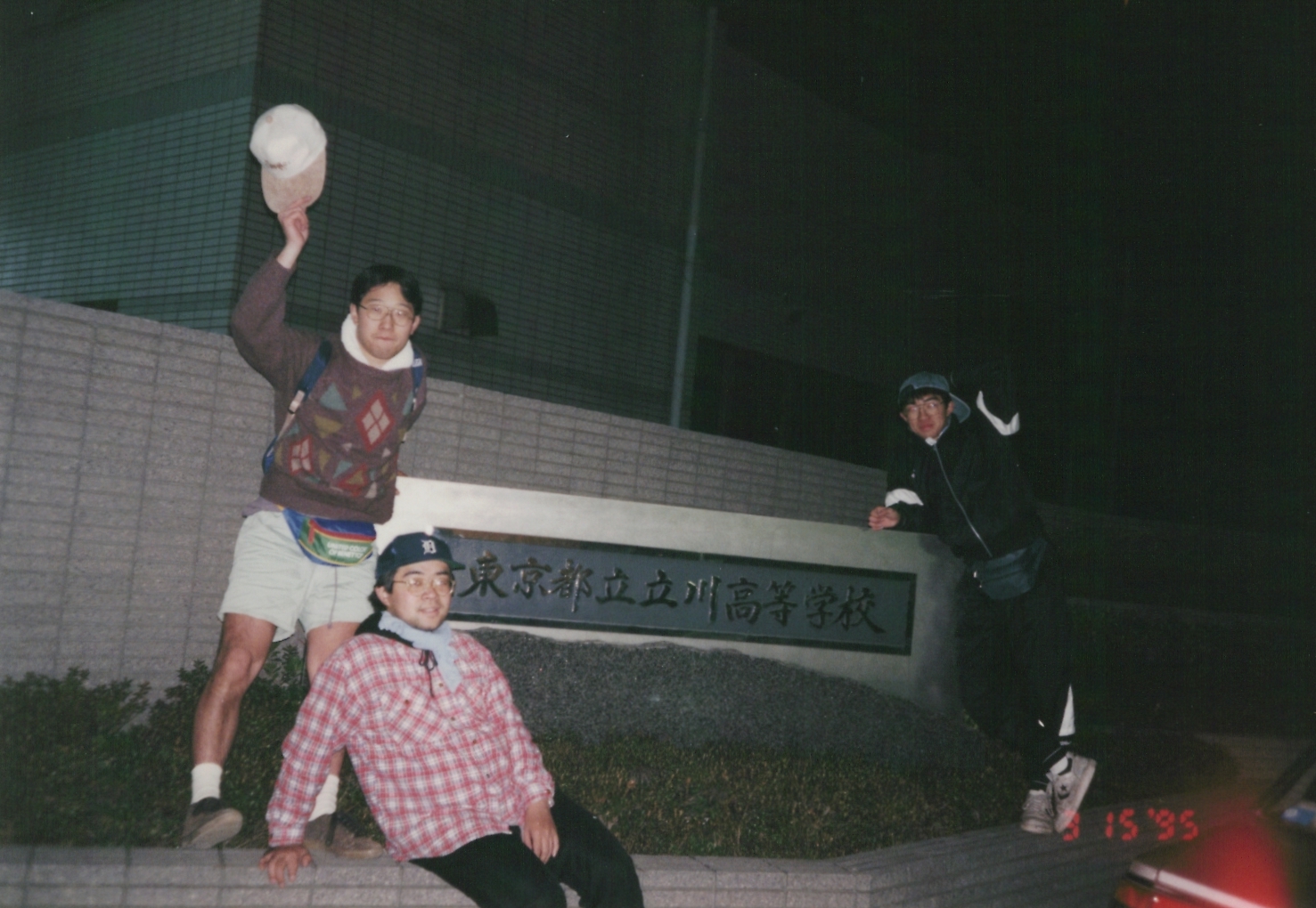我々の母校、立川高校の前でパシャリ。昔とはえらく変わってしまい、いまいち親しみが湧かない。