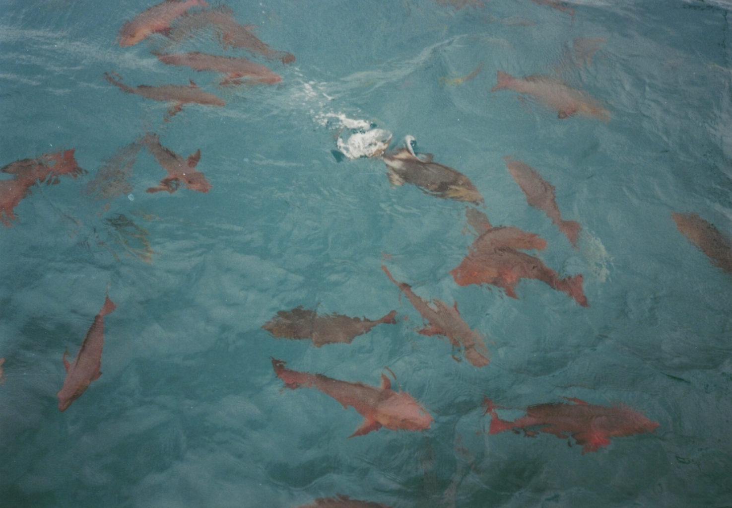 見ての通り海には魚がうじゃうじゃ。餌付けしているのだと思います。