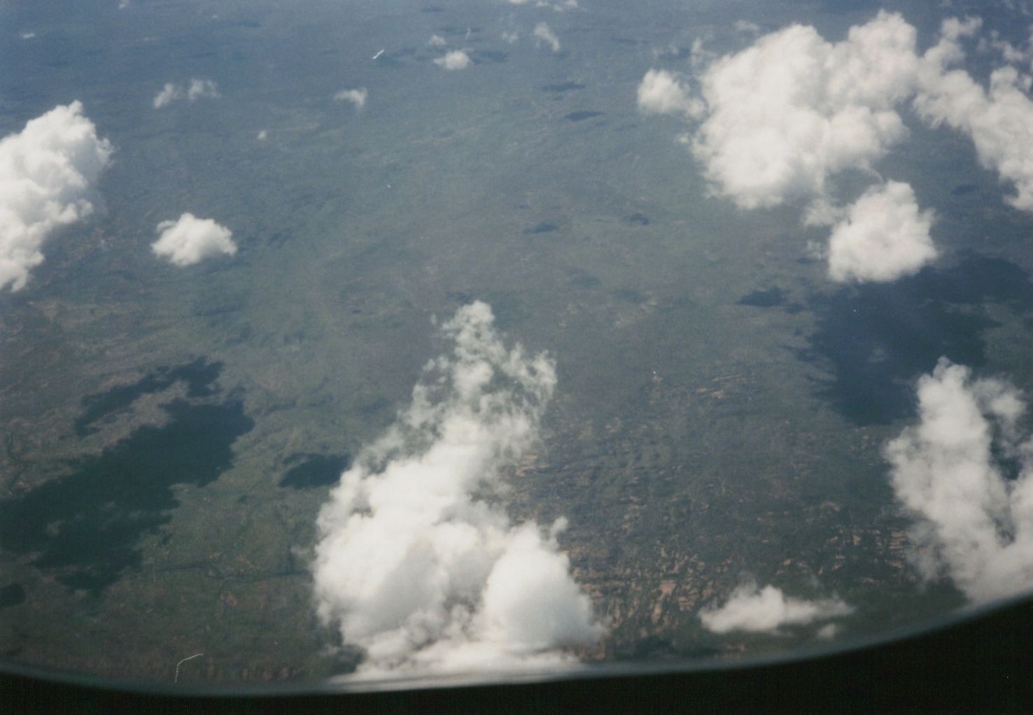 ケアンズからアリス・スプリングスに向かう飛行機の中から撮影。空から見た下の景色はうっそうと茂った緑の森から