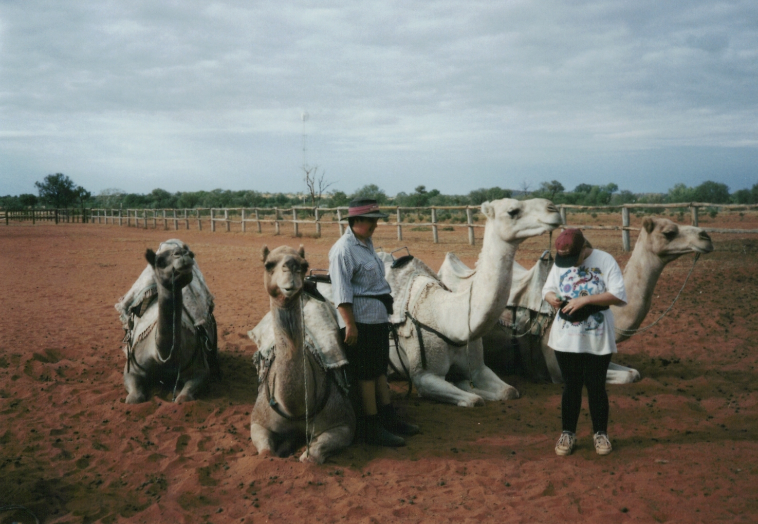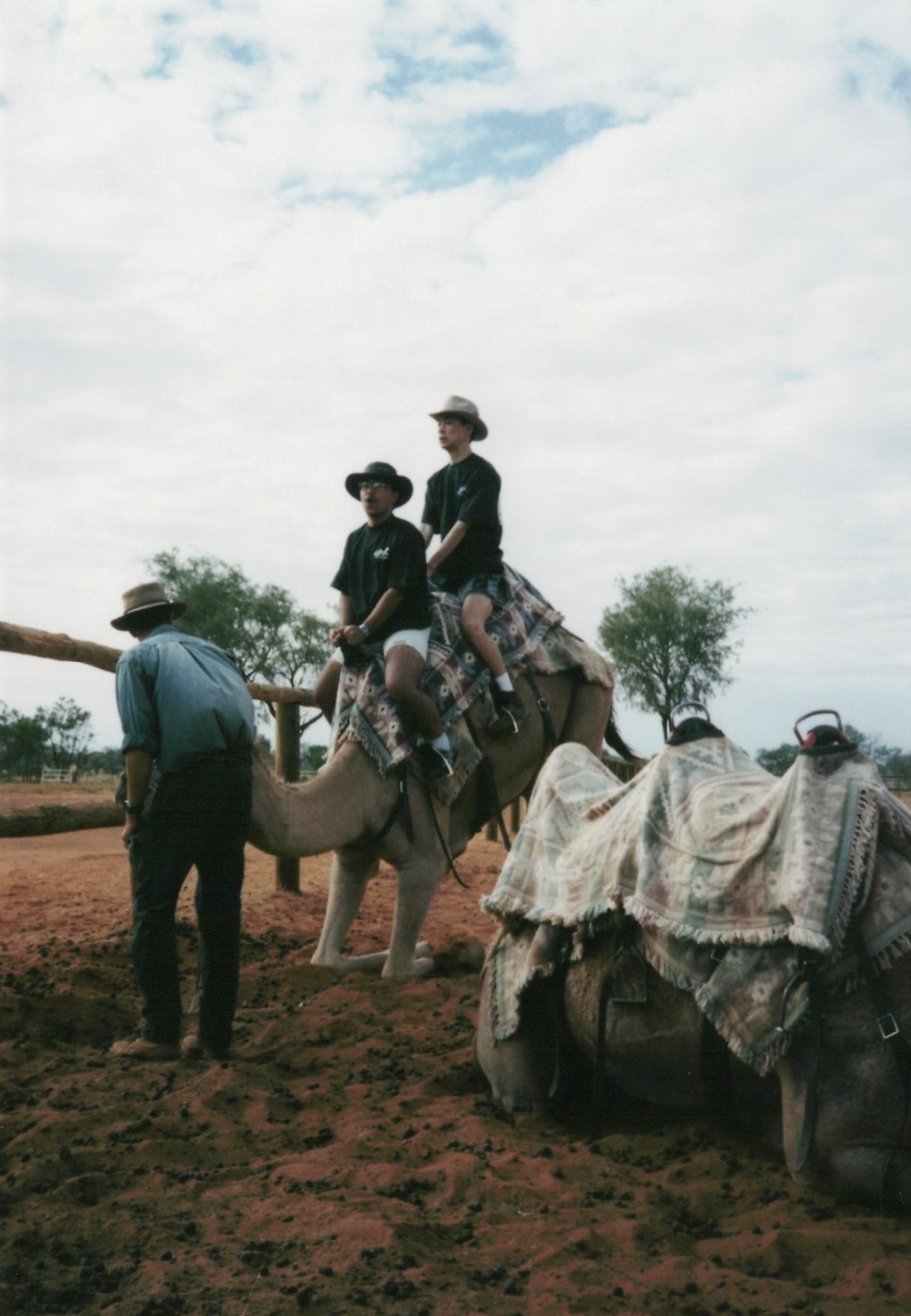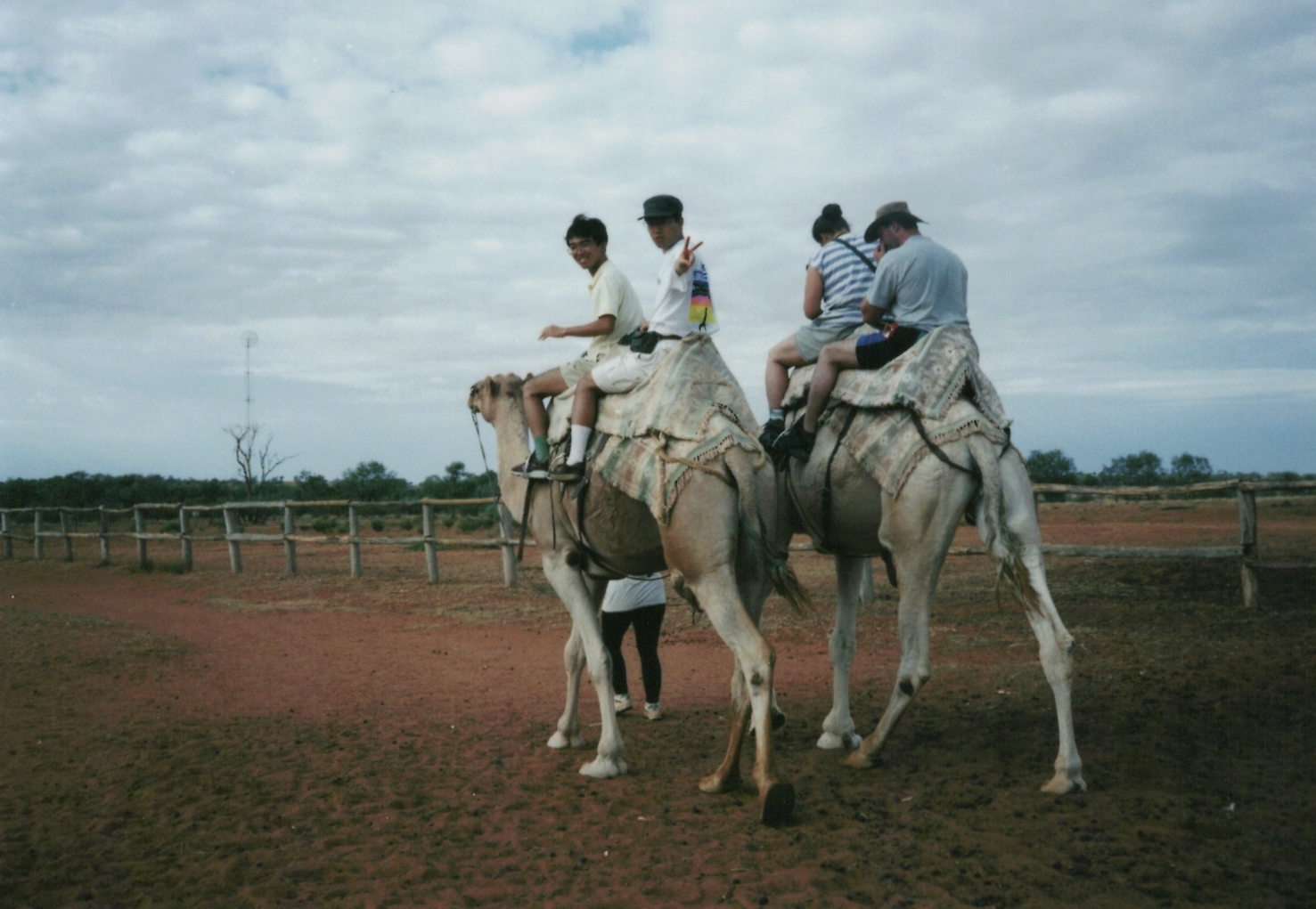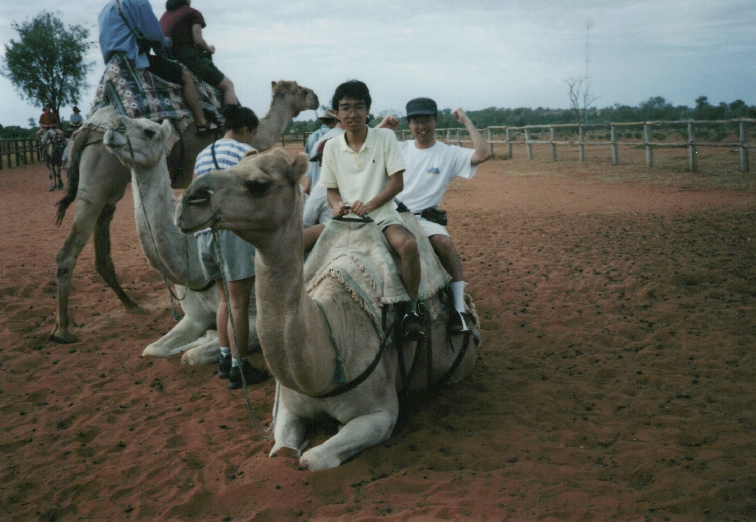 アリス・スプリングスからエアーズロックに向かうバスのツアーで途中休憩したところ。ラクダに乗るのは生まれて初めて。