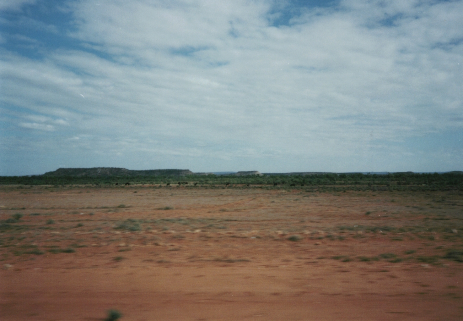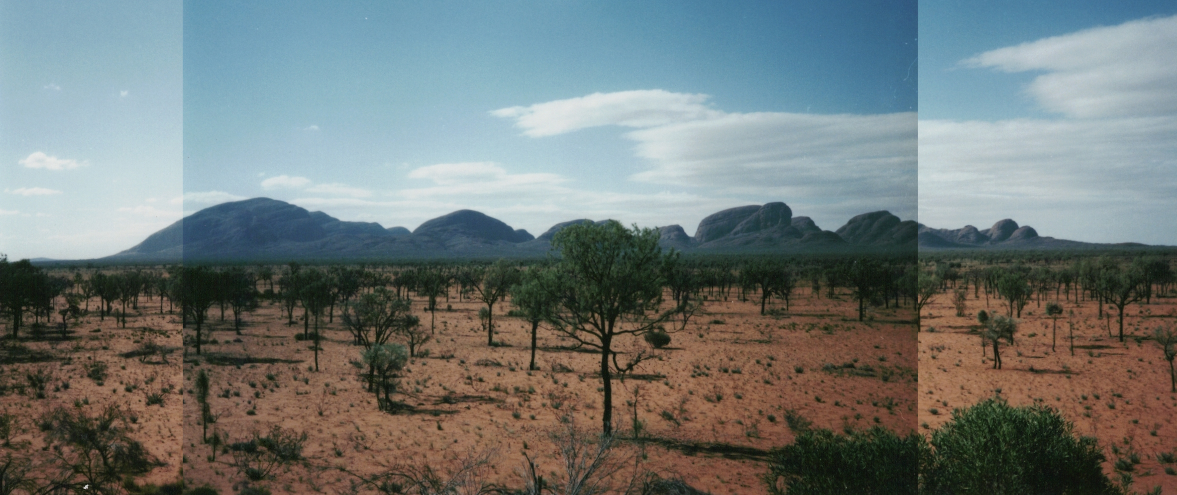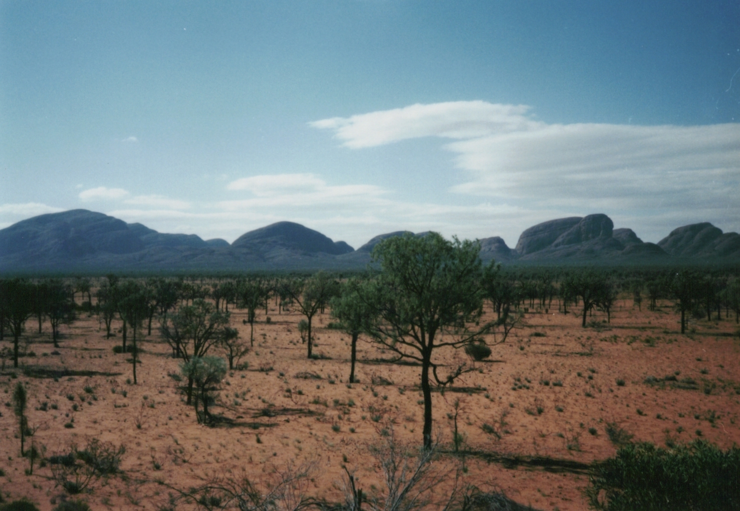 マウントオルガが見えます。マウントオルガは、エアーズロックから西に約30キロ、エアーズロック・リゾートから、約50キロの位置する。エアーズロックのウルルと同様、以前はマウントオルガと呼ばれたが、1995年にアボリジニの正式な呼び方、カタジュタに名前が改められている。