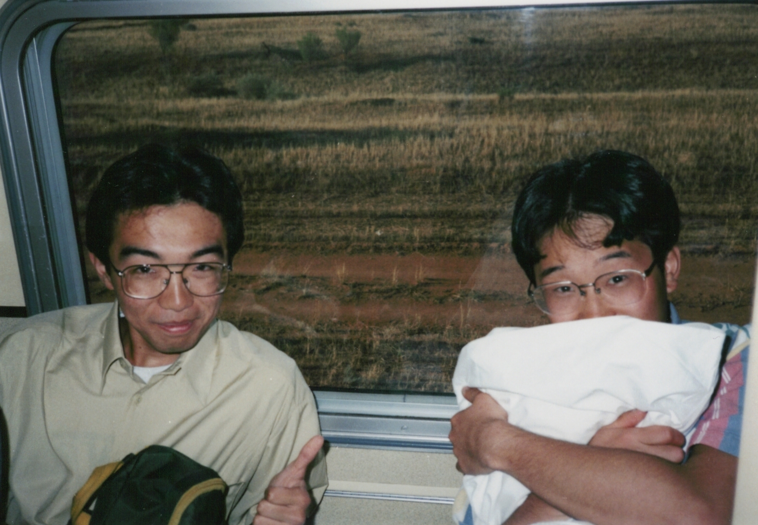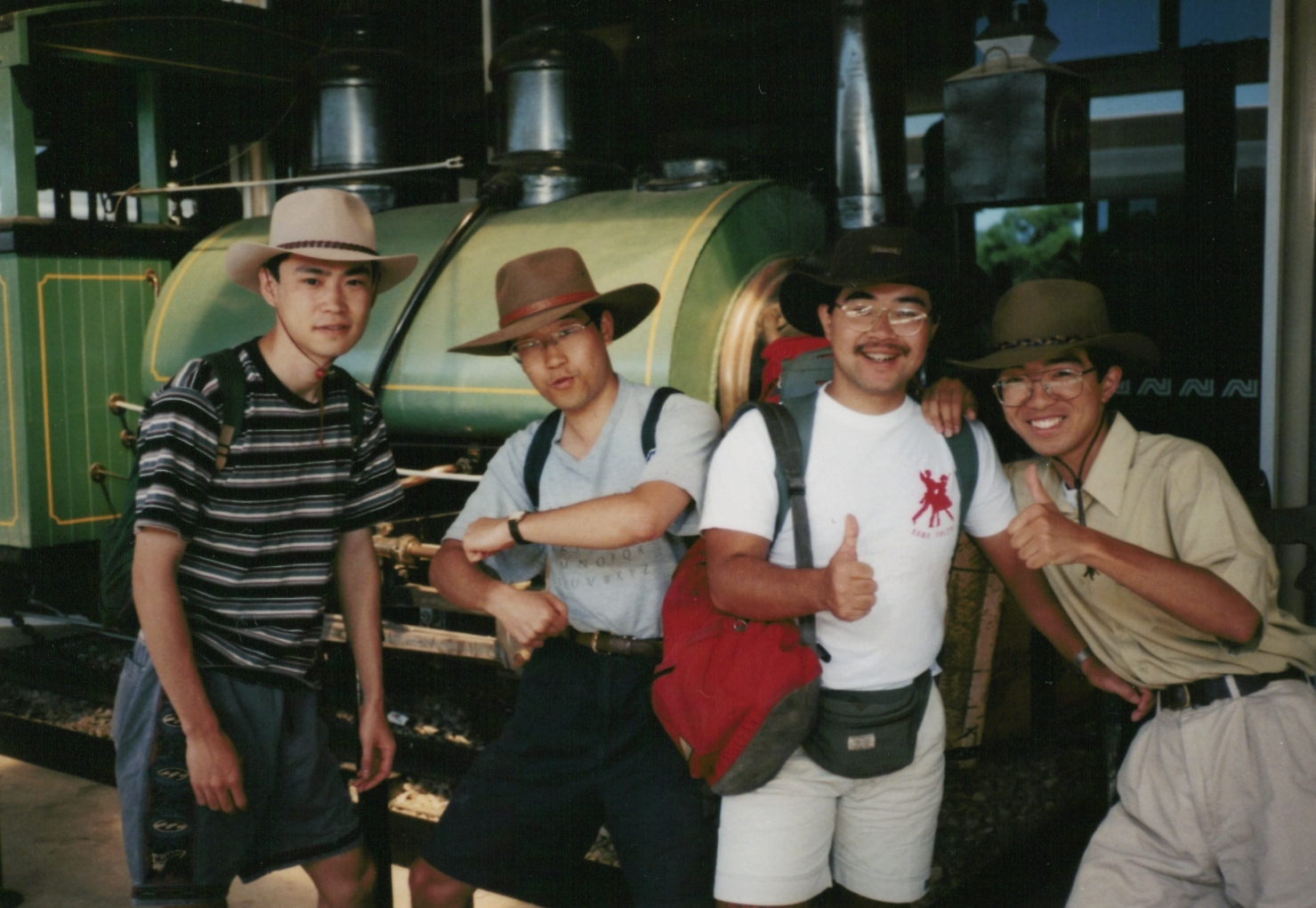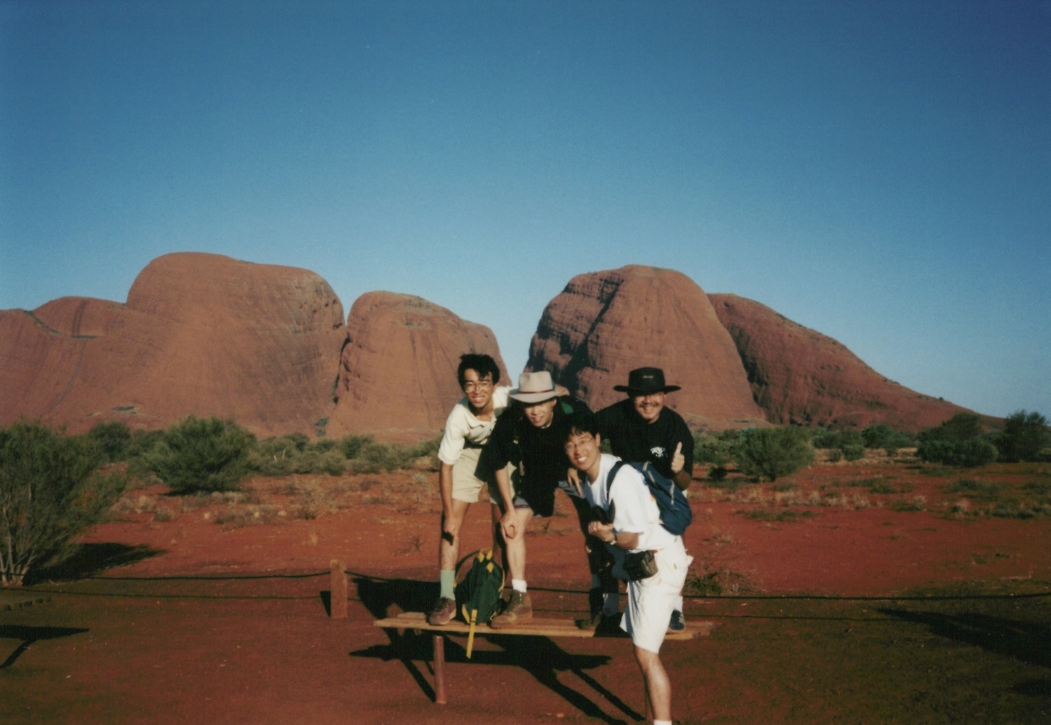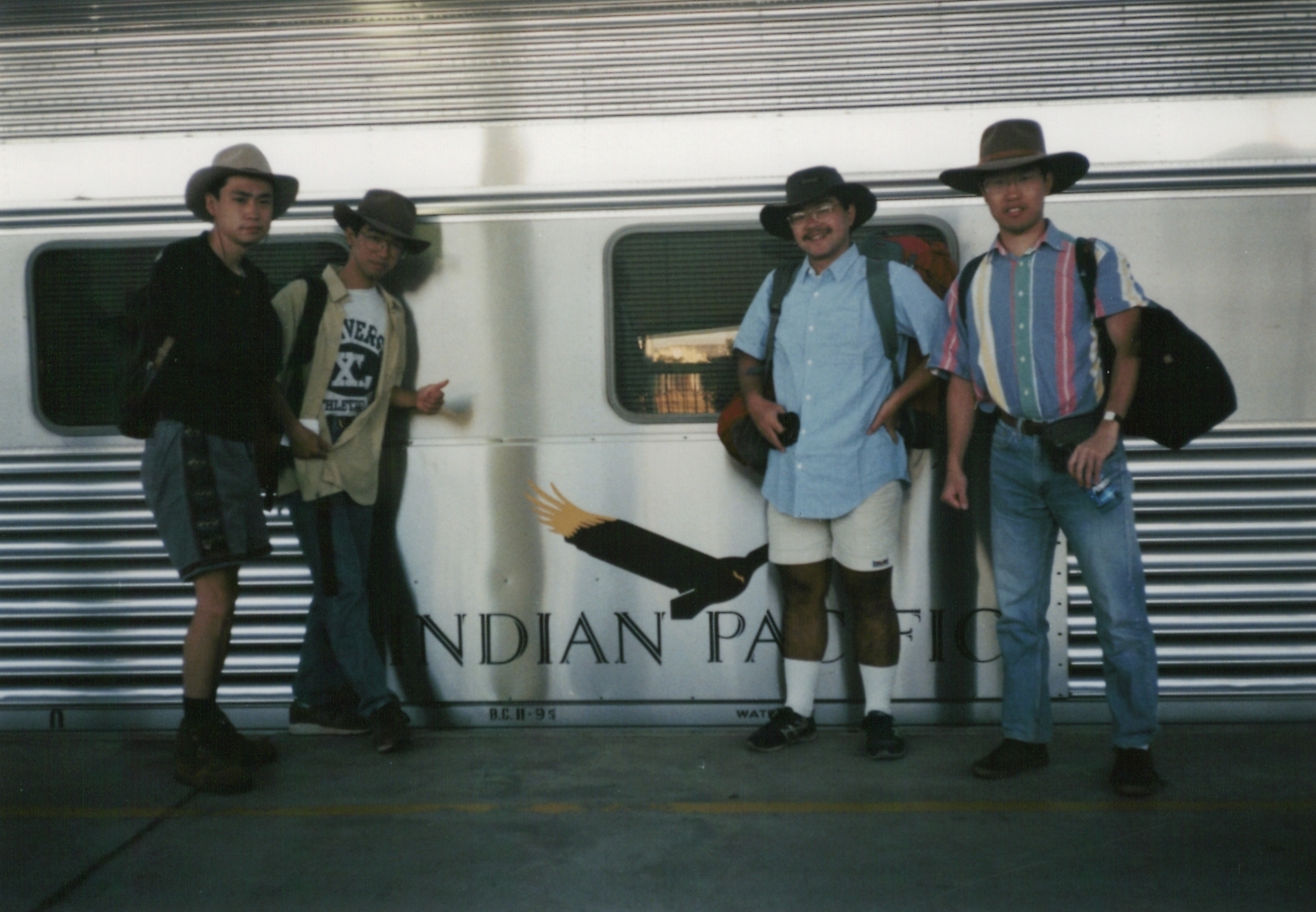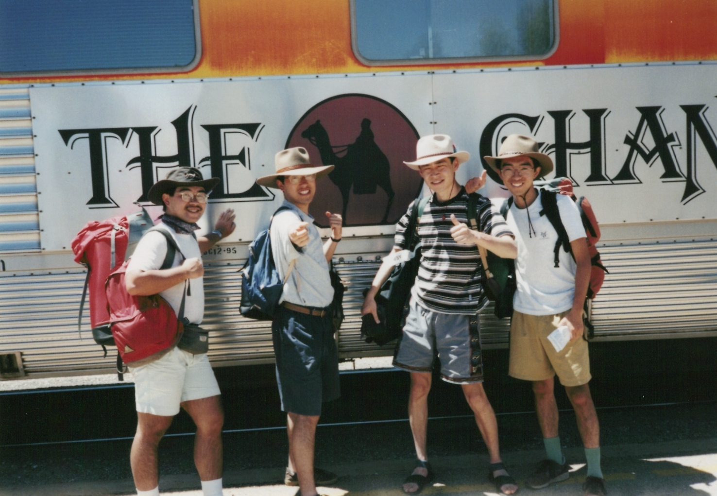 THE GHANの前で4人揃って記念撮影。この当時は、アリス・スプリングスが始発駅です。
