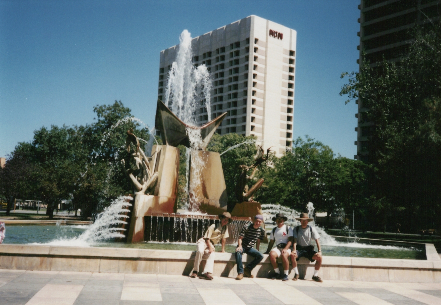 ビクトリア・スクエア内のシンボル的噴水、Three Rivers Fountain Adelaideです。