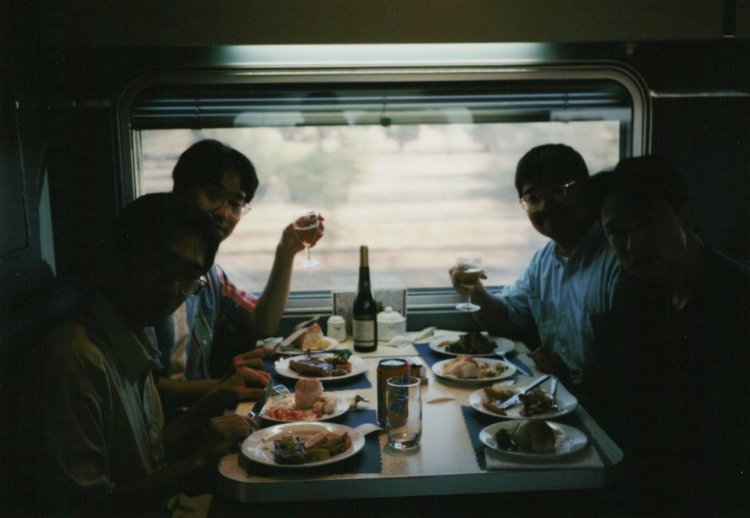 インディアン・パシフィック号の車内風景。ディナーを楽しむ我々4人。