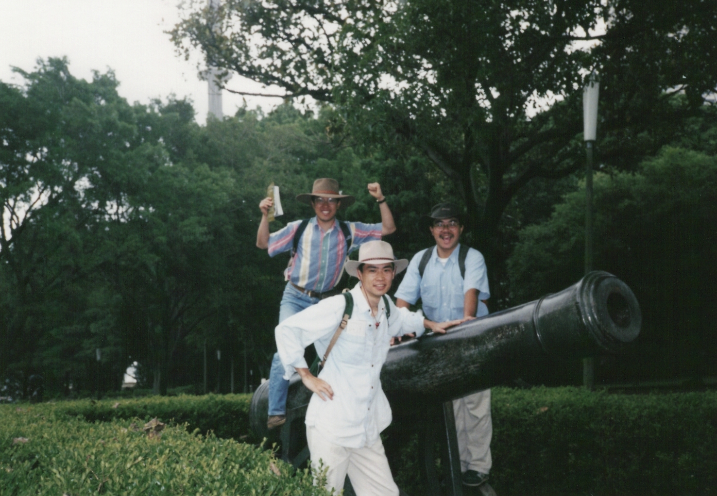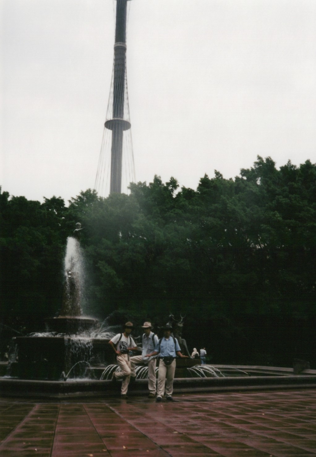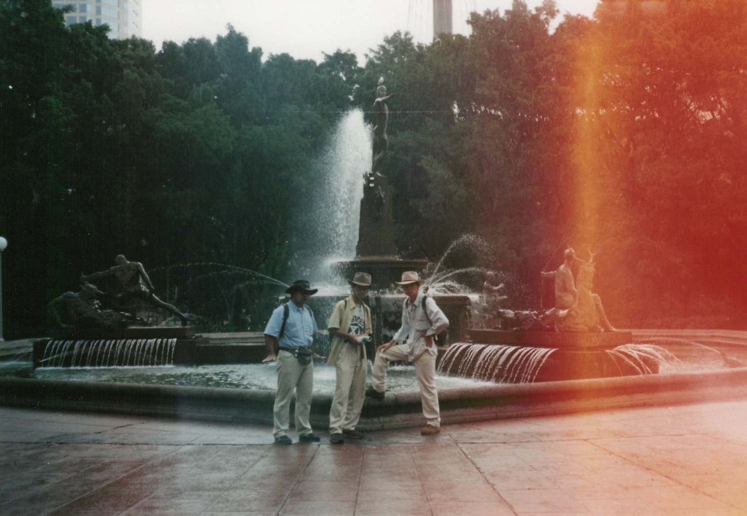 ハイド・パーク内にあるアーチボルドの噴水前にて。感光しているのは、西村がフラッシュのボタンと間違えて、フィルムの蓋を開けてしまったからです。
