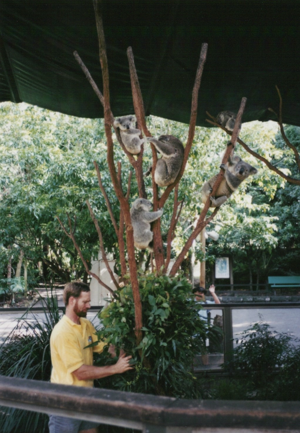 飼育員がコアラに餌をあげています。いよいよこの後、コアラを抱けるのか?!期待に胸を膨らませる我々4人。