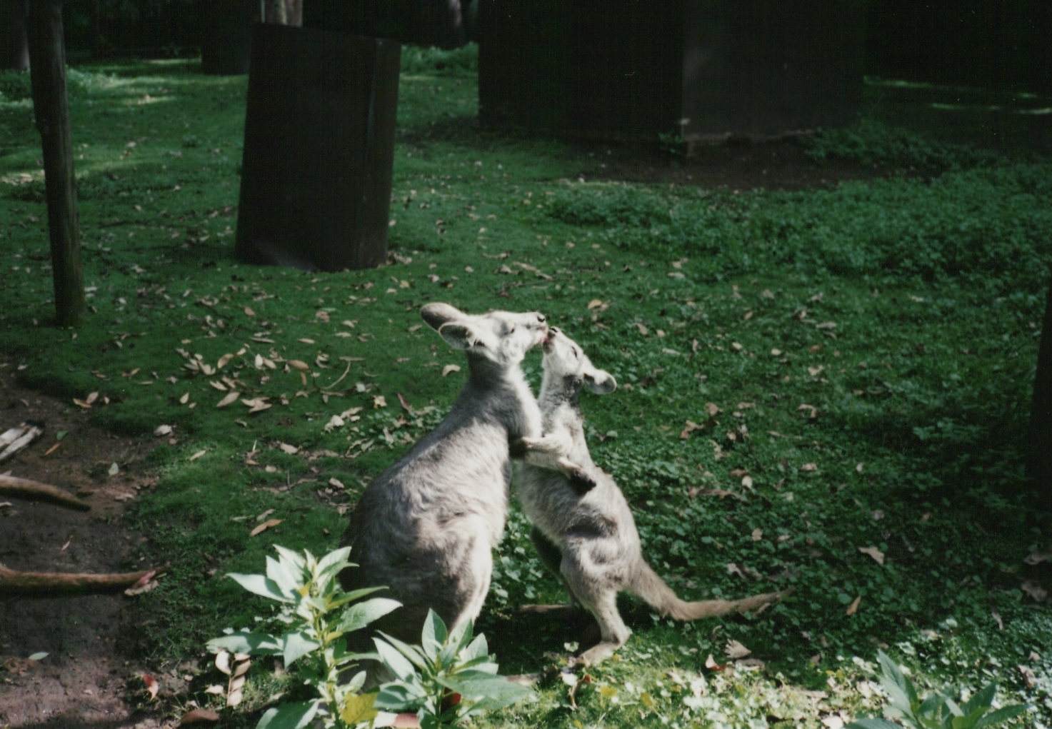 という訳で、コアラを諦め、別の動物を見学することにしました。じゃれ合うカンガルーたち。