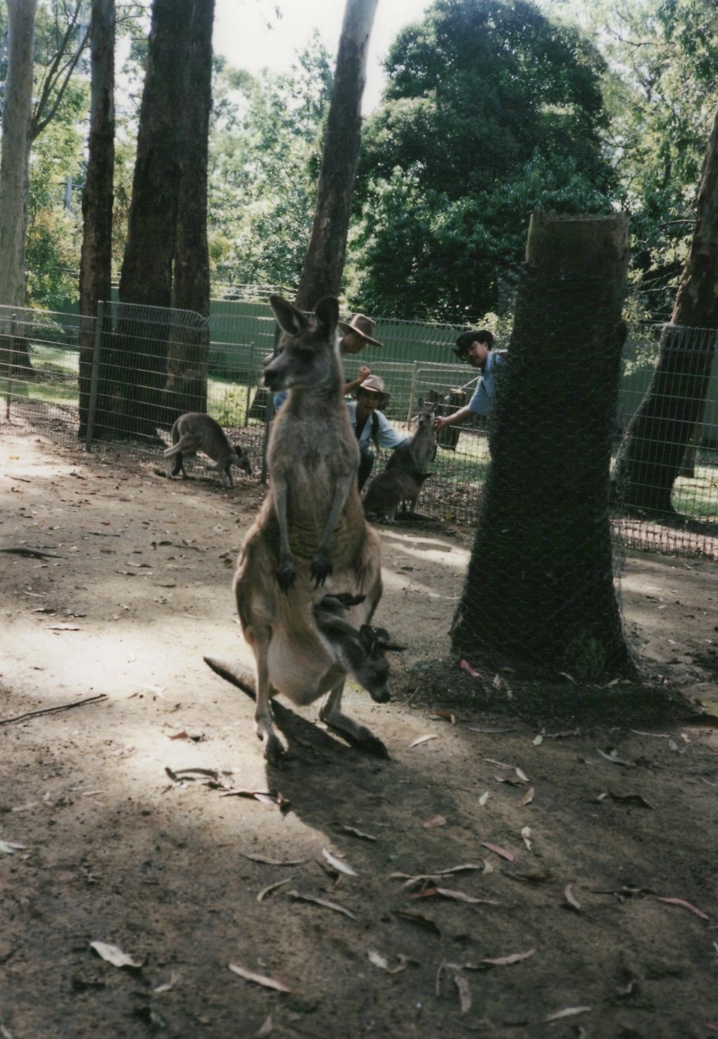 おなかのポケットから子供のカンガルーが顔を出しています。知識では知っていたけど、実際に見たのは初めて。