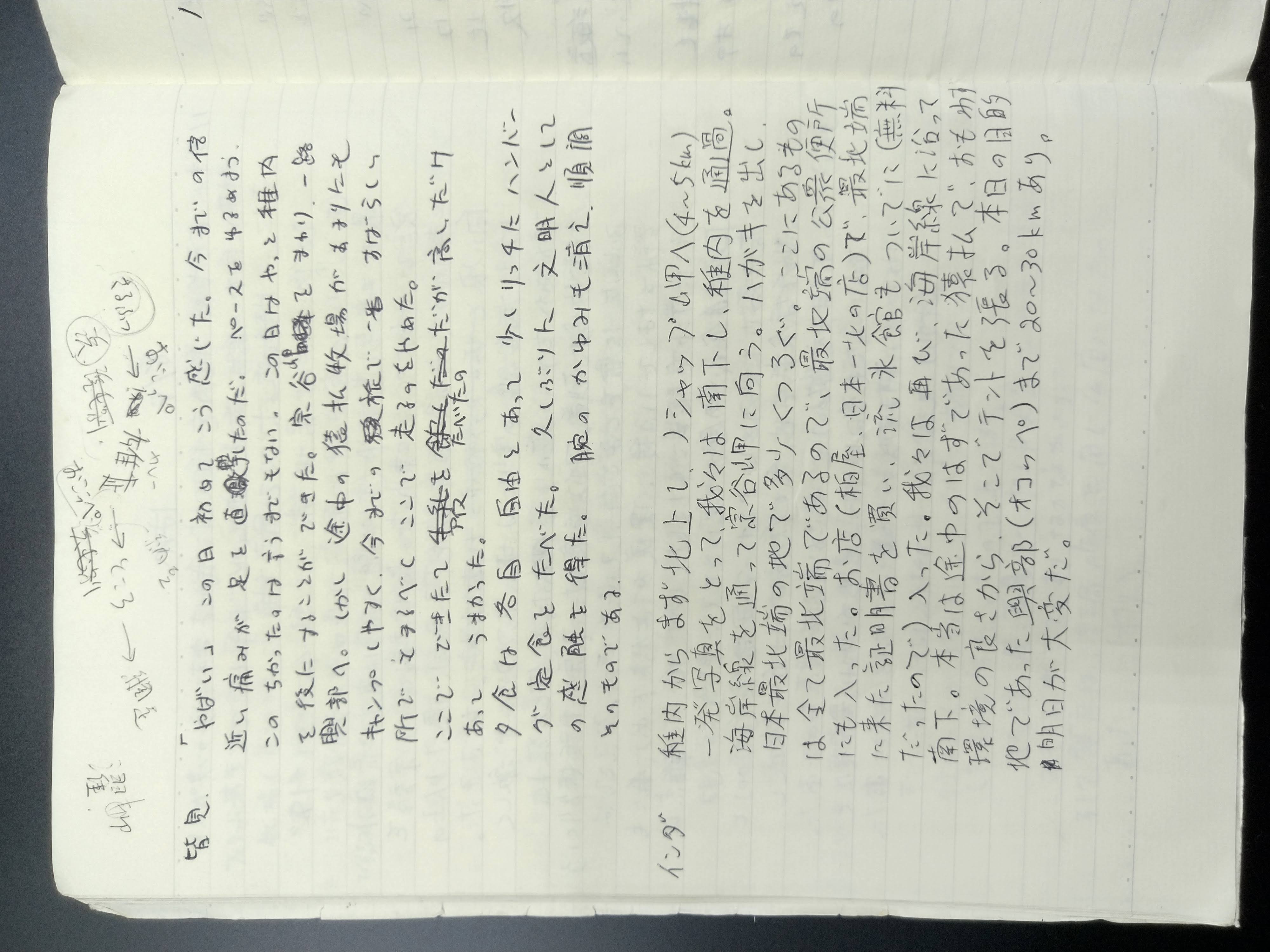 ホーム >旅の軌跡> 日記原本(本州~北海道旅行)