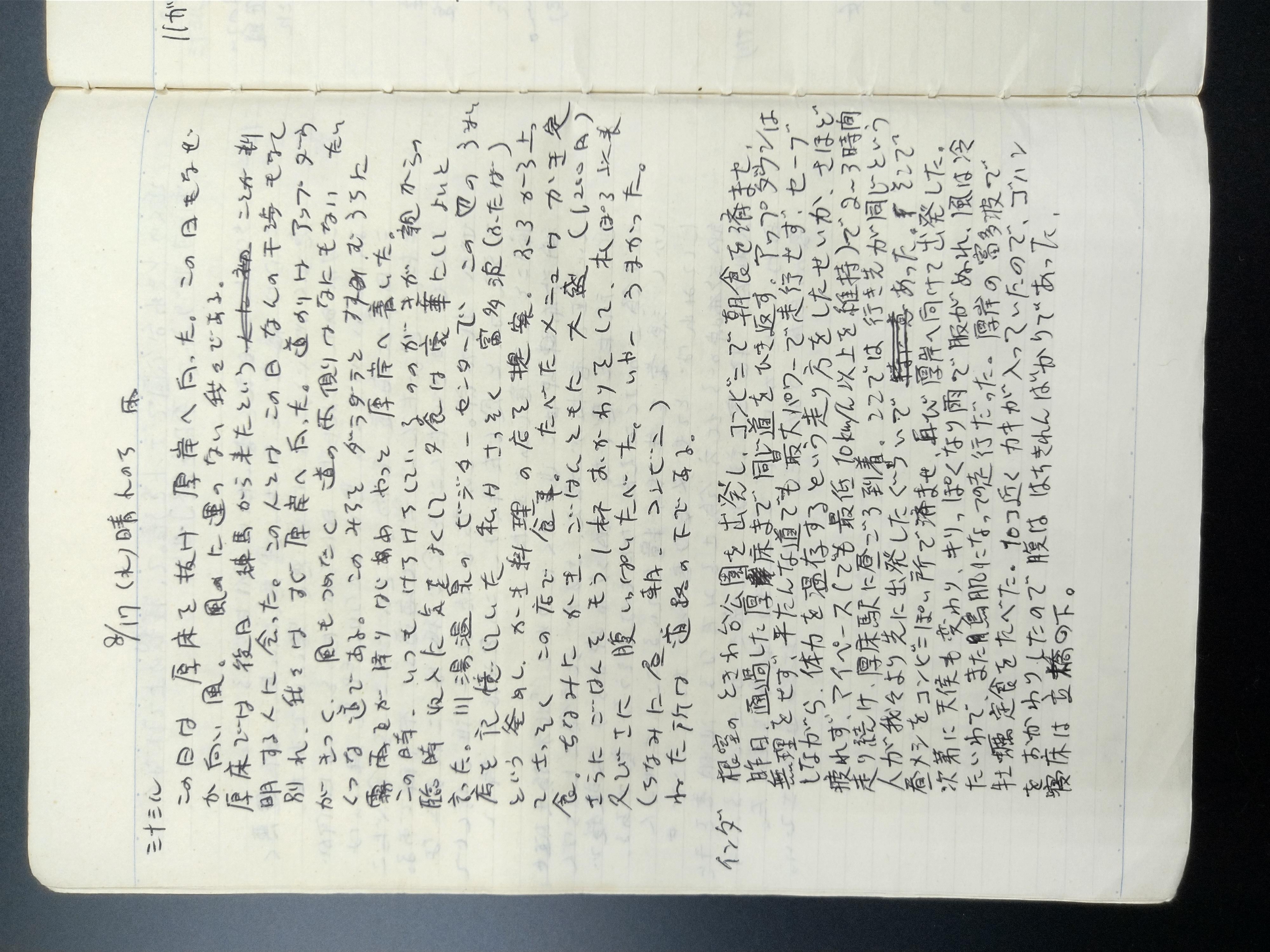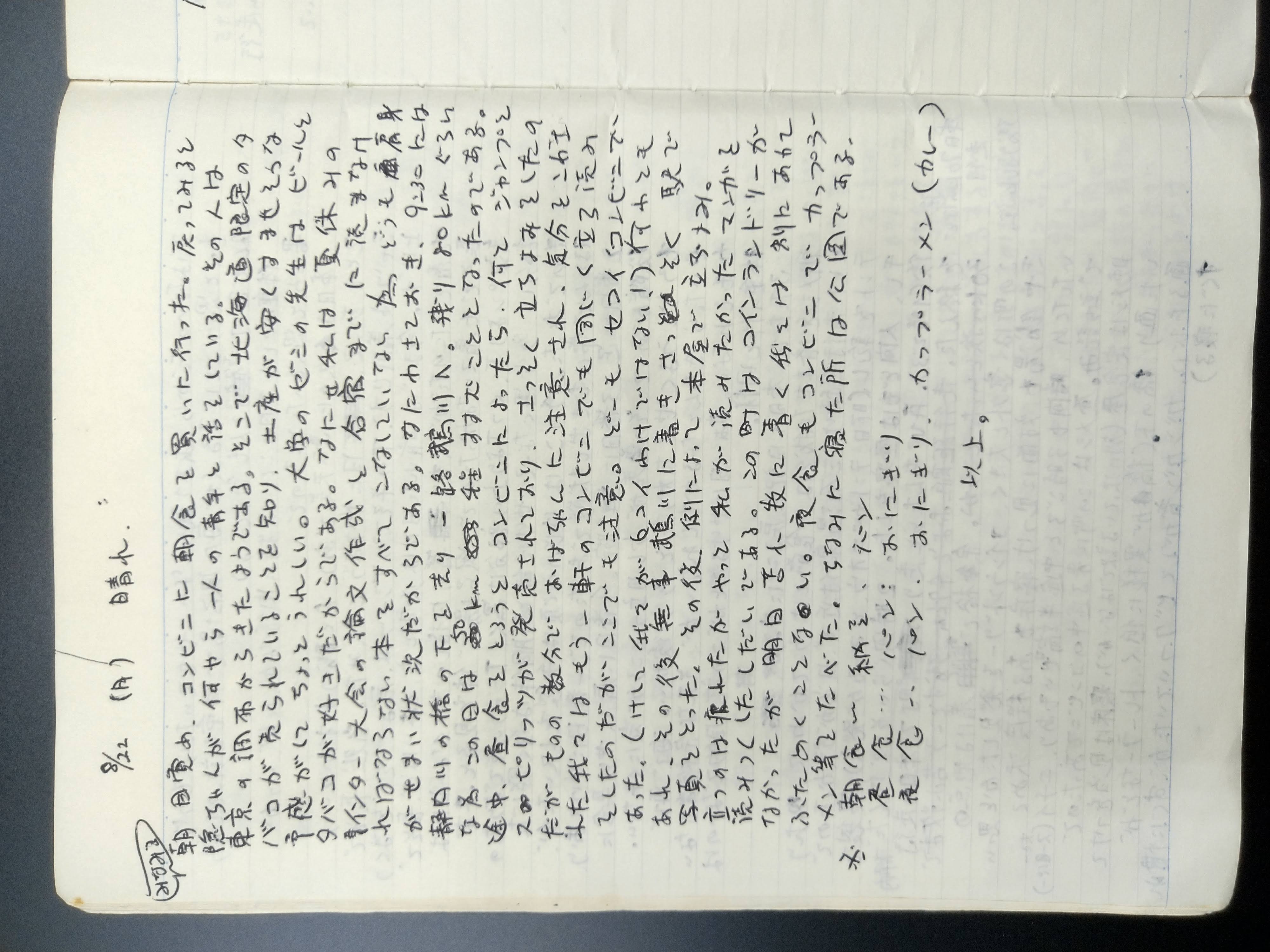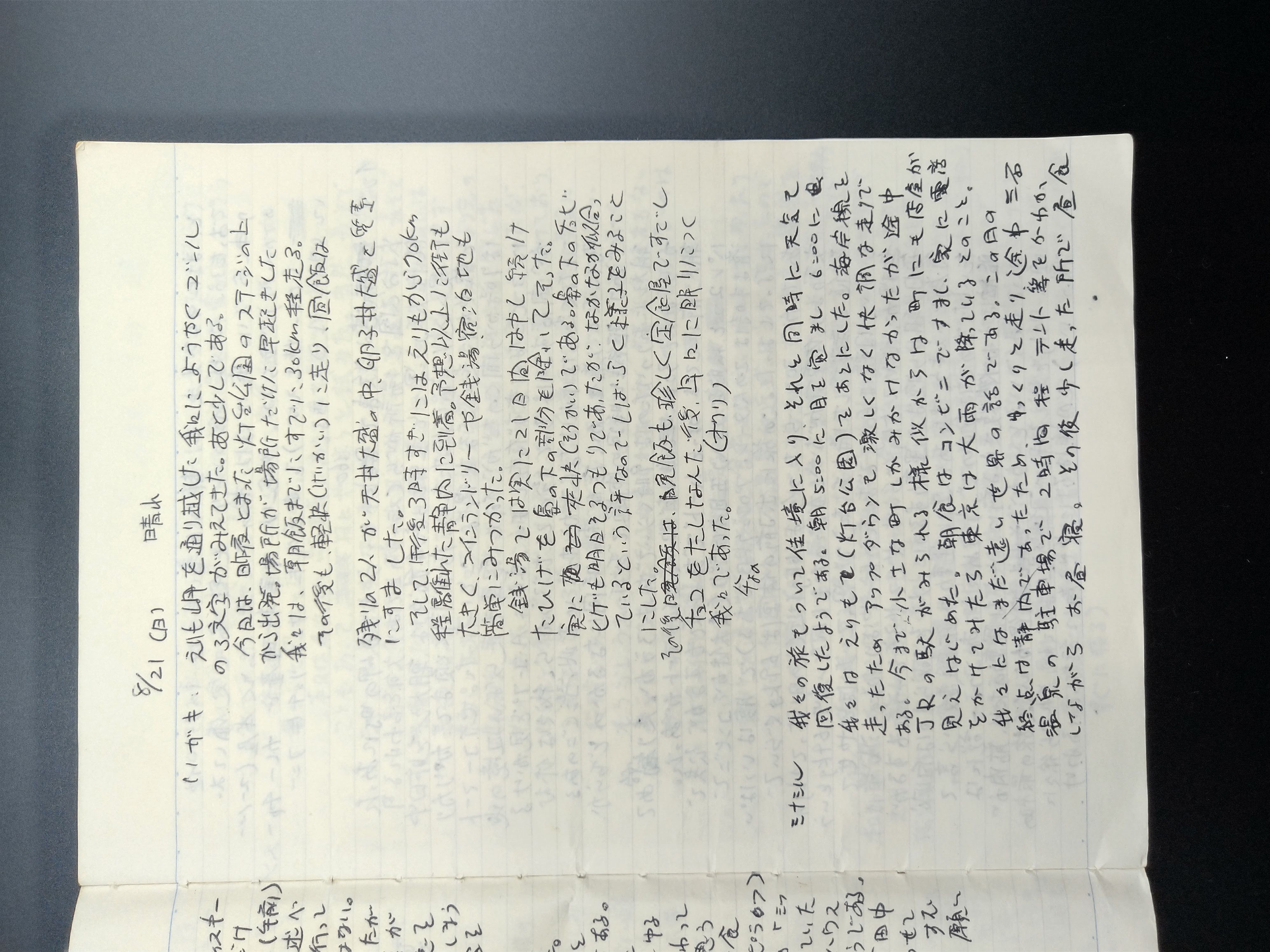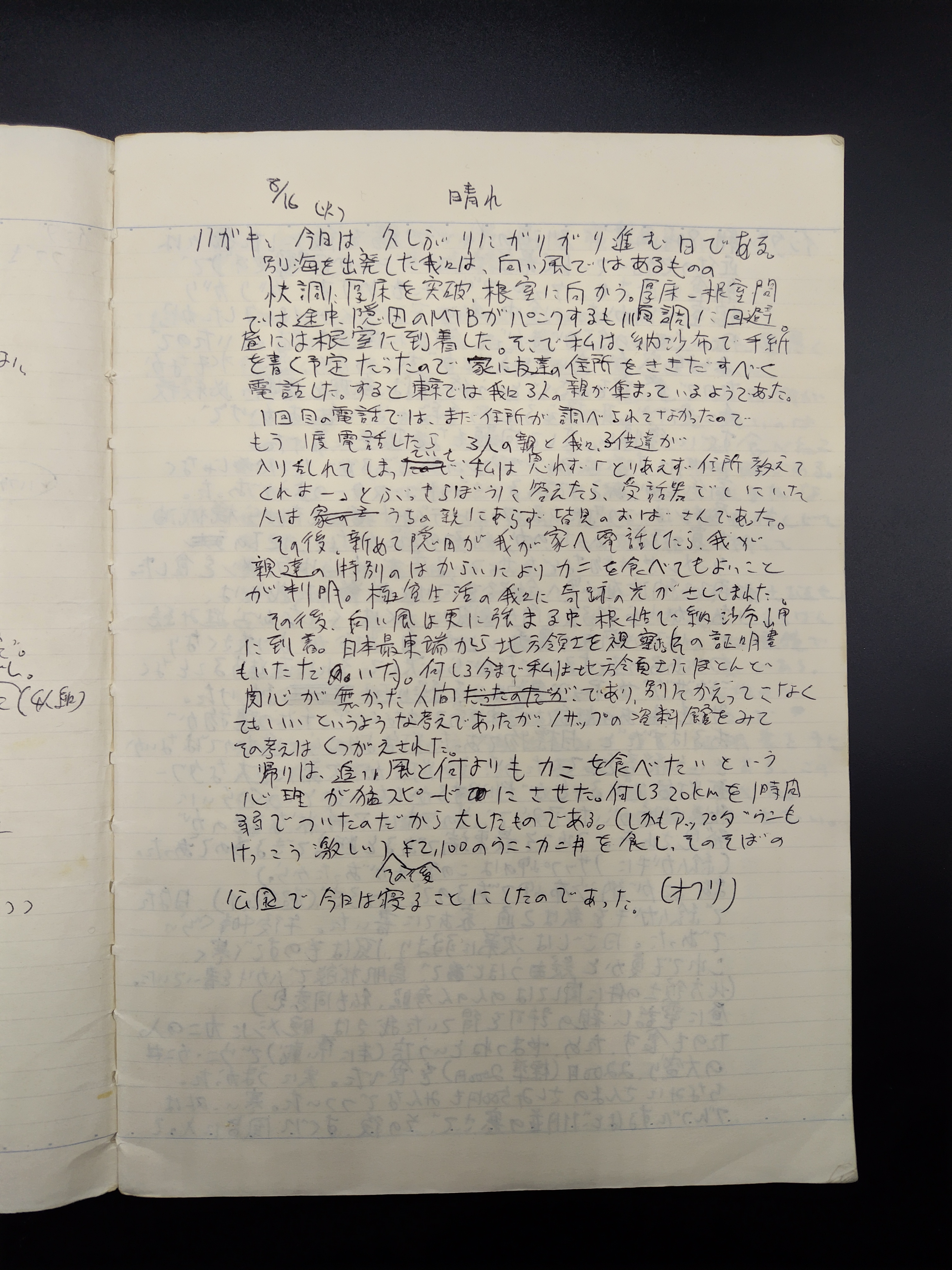 ホーム >旅の軌跡> 日記原本(本州~北海道旅行)