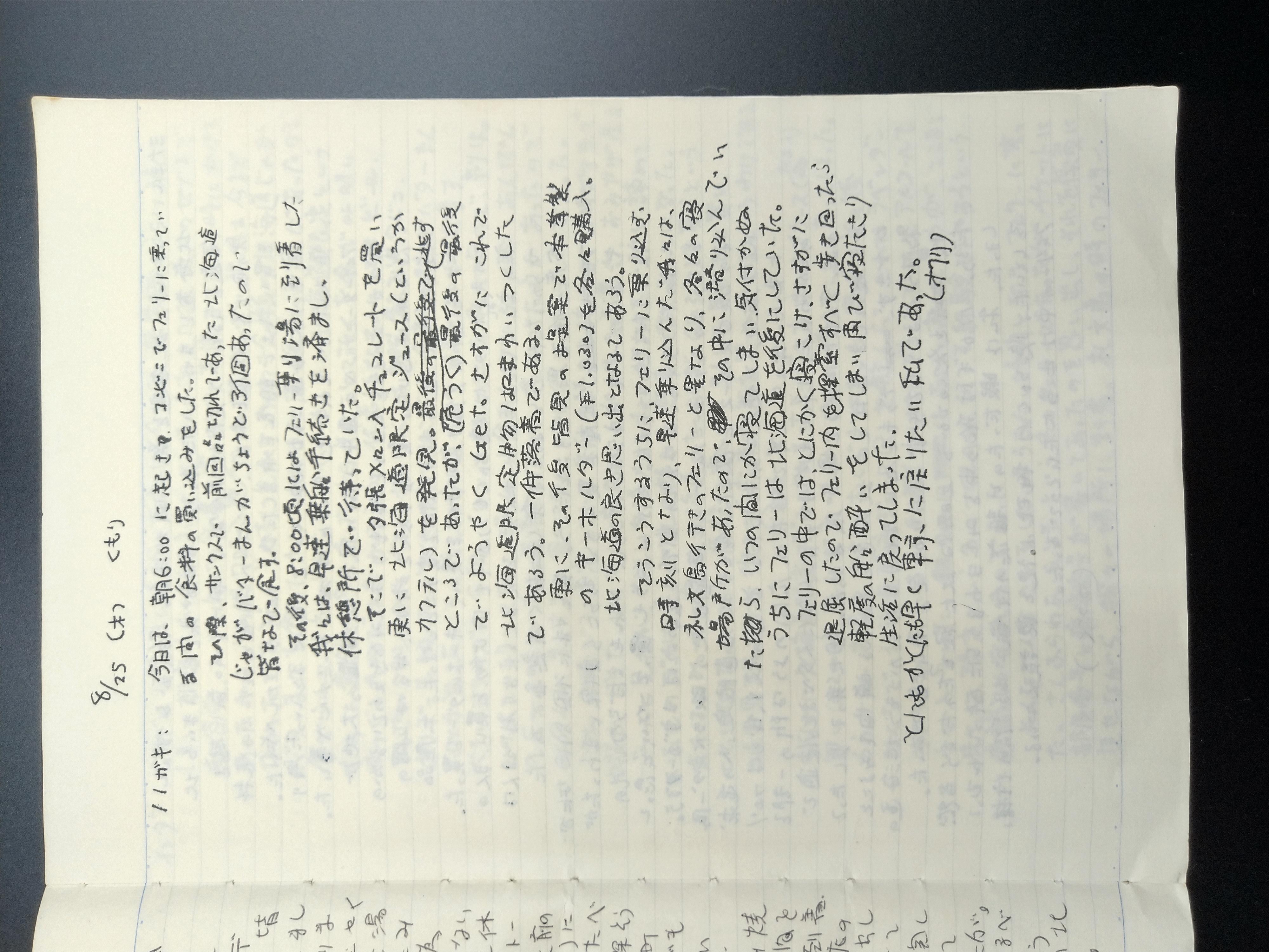 ホーム >旅の軌跡> 日記原本(本州~北海道旅行)